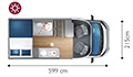 Il modello Giottiline Compact ha proprio tutto, dal grande bagno all'ampio garage in solo 599cm.