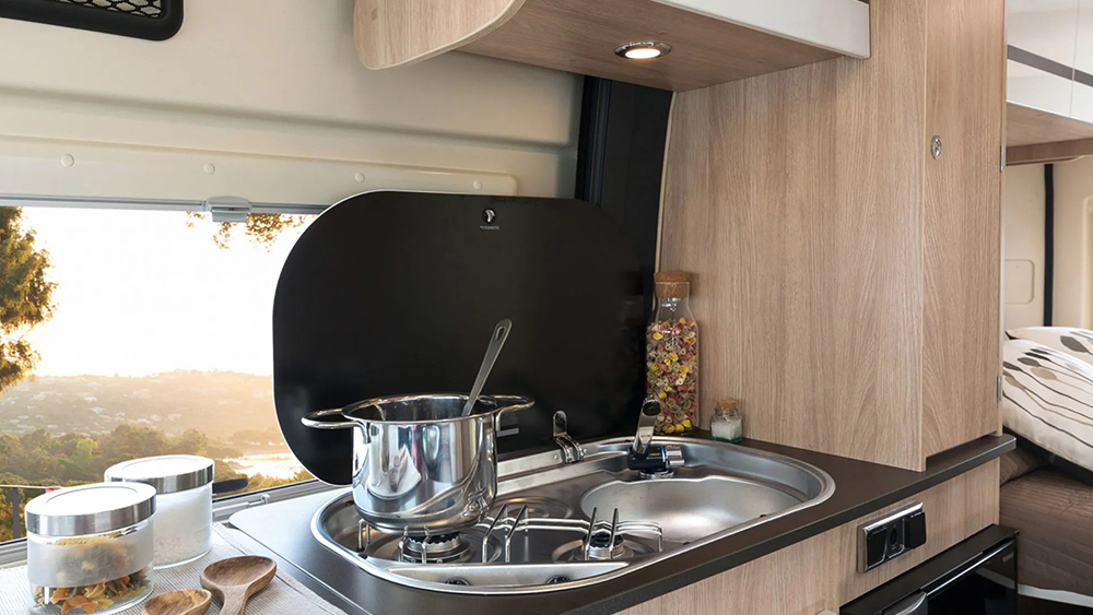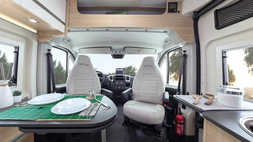 Dotato di tutte le comodità di un veicolo ricreazionale, GiottiVan offre una zona giorno multifunzionale con una cucina completamente attrezzata, un'area pranzo e relax confortevole, e un bagno con doccia. Durante la notte, l'area giorno si trasforma in un comodo letto aggiuntivo, assicurando a tutti i viaggiatori un sonno riposante e confortevole. Grazie a soluzioni di stoccaggio intelligenti, c'è spazio sufficiente per tutte le attrezzature e le forniture di viaggio, garantendo un'organizzazione impeccabile.