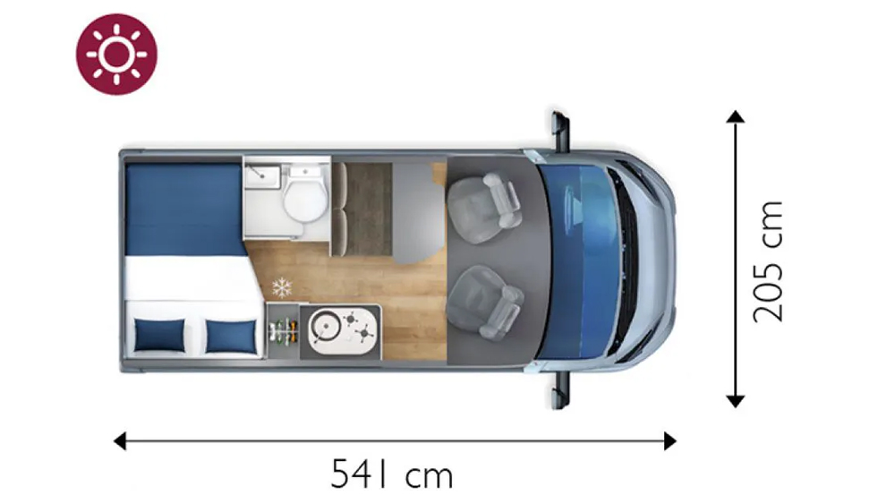 La praticità è uno dei punti di forza di questo camper van. Grazie alle sue dimensioni compatte, è facile da guidare e parcheggiare, consentendo di esplorare sia le strade cittadine che i luoghi più remoti e nascosti, immergendosi in un contatto autentico con la natura e le attrazioni locali. Con tutto ciò di cui si ha bisogno a portata di mano, i viaggiatori possono godere di un'indipendenza totale, scegliendo liberamente le destinazioni e i tempi del proprio viaggio.