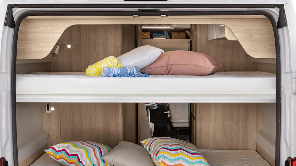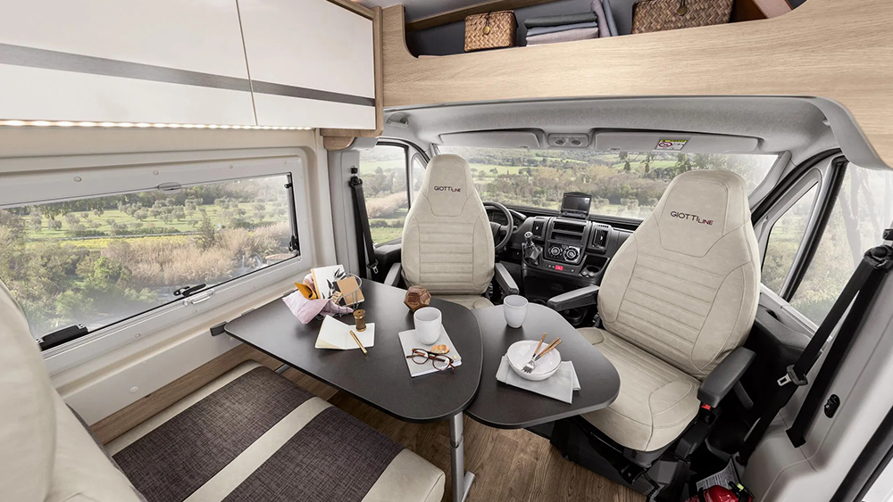 Il veicolo è progettato per ospitare comodamente fino a cinque persone, grazie al doppio letto matrimoniale a castello e alla dinette trasformabile in un letto singolo. La rete del letto alto è dotata di doghe ad incastro, assicurando un sonno confortevole. Per quanto riguarda la guida, il GiottiVan 60B è equipaggiato con sistemi avanzati come Traction +, Hill Holder, Hill Descent e Cruise Control, che migliorano la sicurezza e la facilità di manovra.