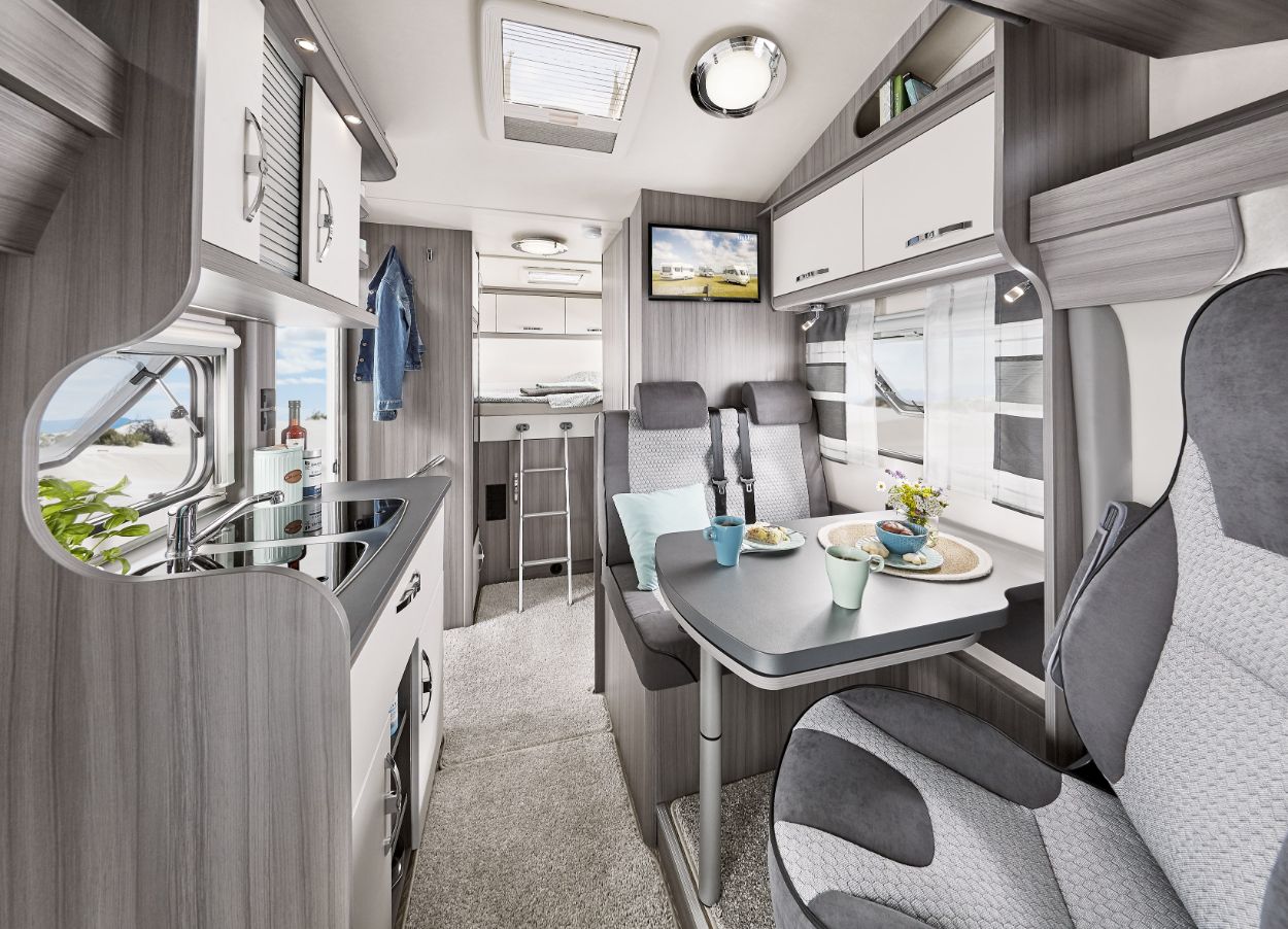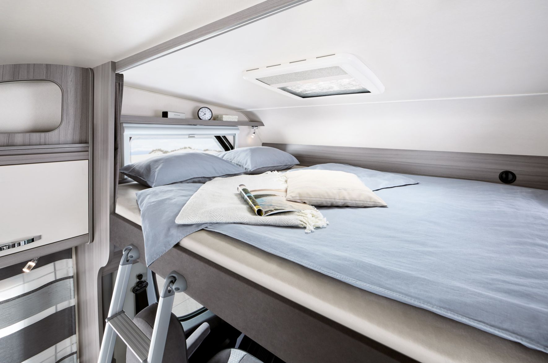 L’Hobby OPTIMA ONTOUR MANSARDATO offre tutto quel che si può desiderare: molto spazio, grandi scomparti nonché un arredamento moderno e pratico. La mansarda funge, di giorno, da scomparto supplementare dove riporre oggetti e, di notte, da arioso letto a baldacchino.