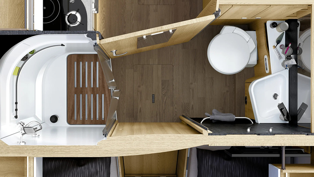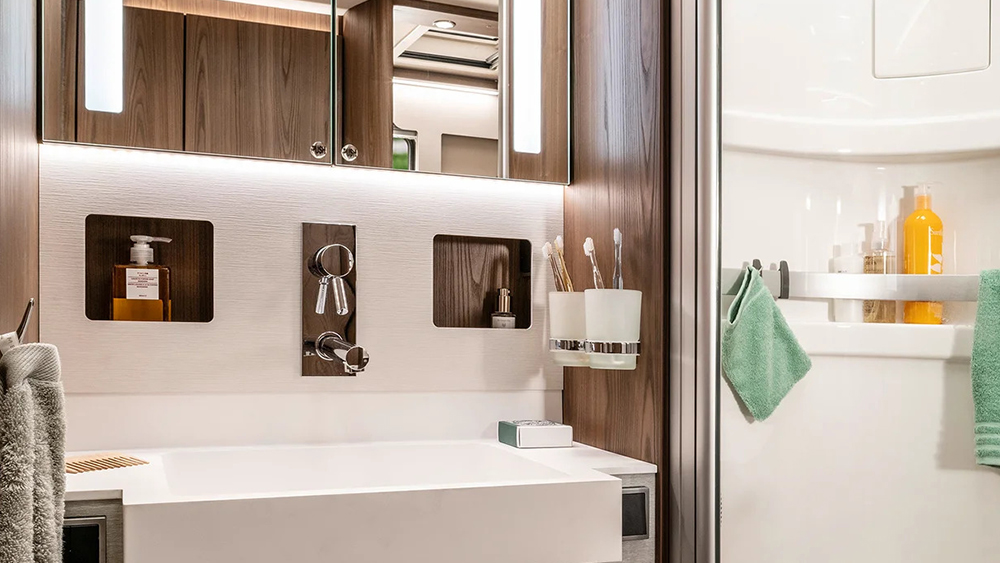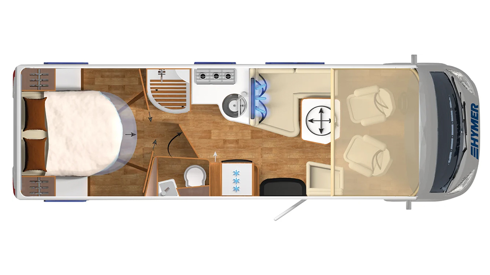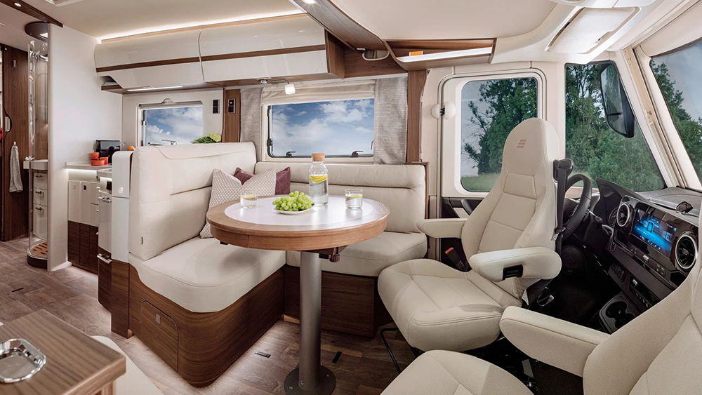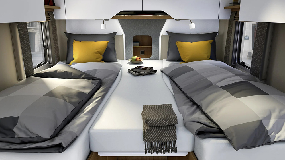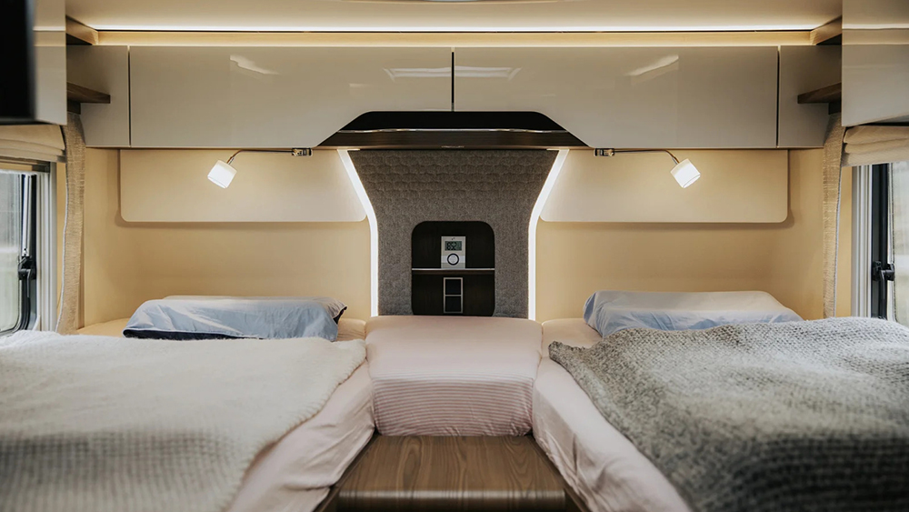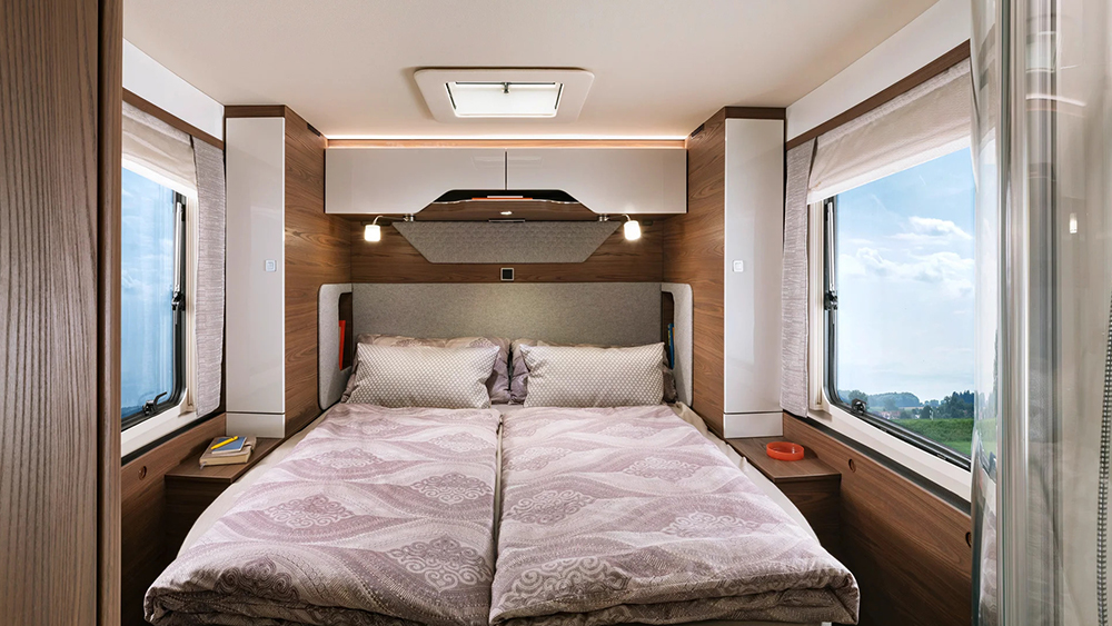 Con una vasta gamma di soluzioni di stivaggio, tra cui armadi, cassetti e vani portaoggetti, il B-Klasse MasterLine assicura che non ci sia mai compromesso sullo spazio per portare con sé tutto ciò di cui si ha bisogno durante i viaggi. La zona notte è progettata per offrire un comfort superiore, sia che si preferisca un letto matrimoniale o letti singoli, assicurando che ogni viaggio si concluda con un riposo rigenerante.