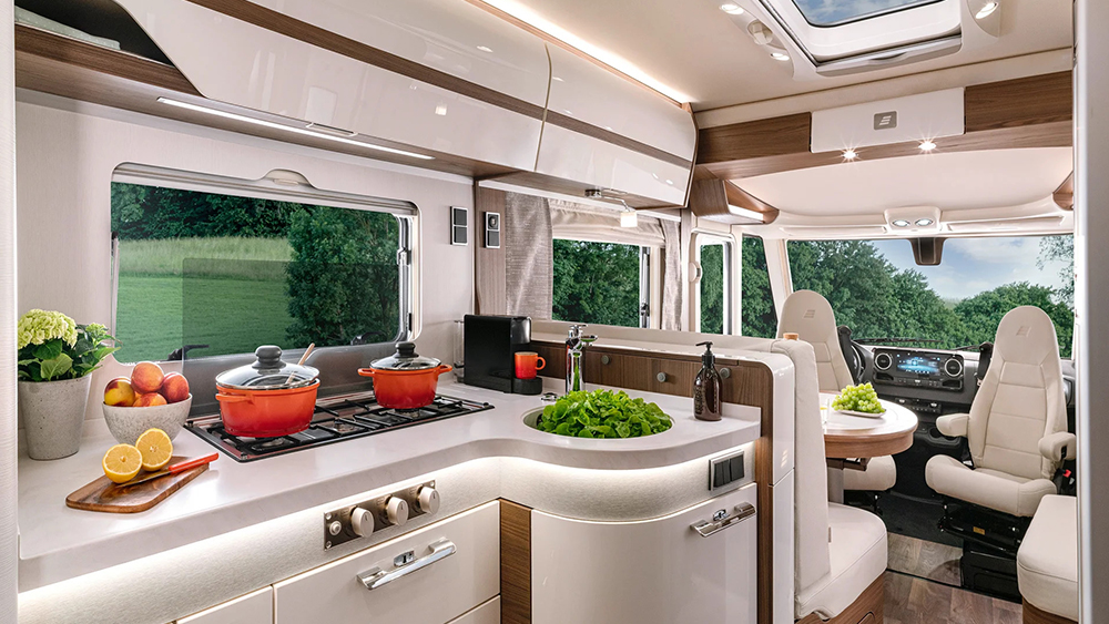 Esteticamente, il design esterno è imponente, caratterizzato dall'iconica HYMER Iconic Signature che conferisce al veicolo uno stile sportivo e distintivo. All'interno, l'armonia del design si fonde con un comfort eccezionale, grazie anche al sistema innovativo di illuminazione che crea un'atmosfera spaziosa e accogliente.