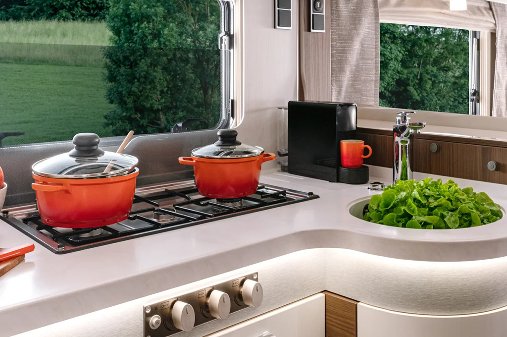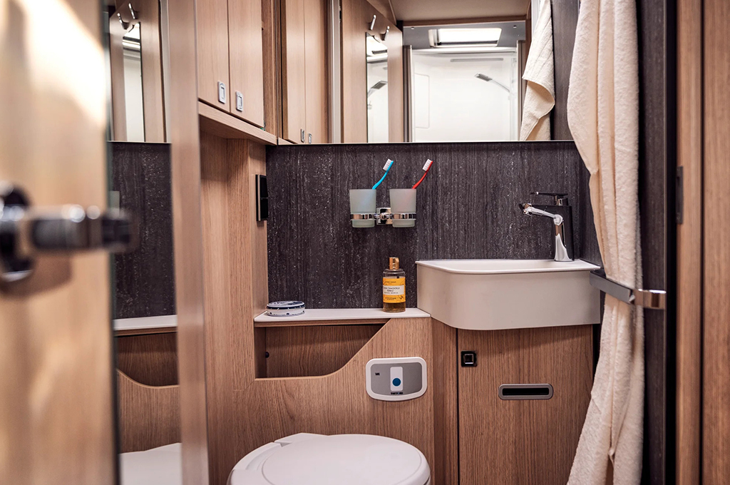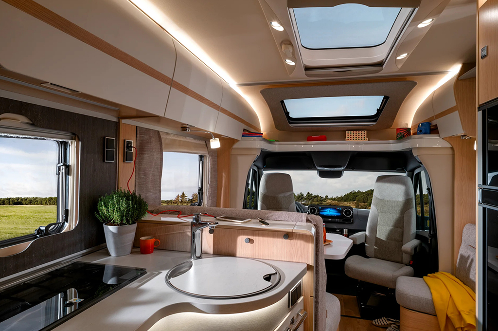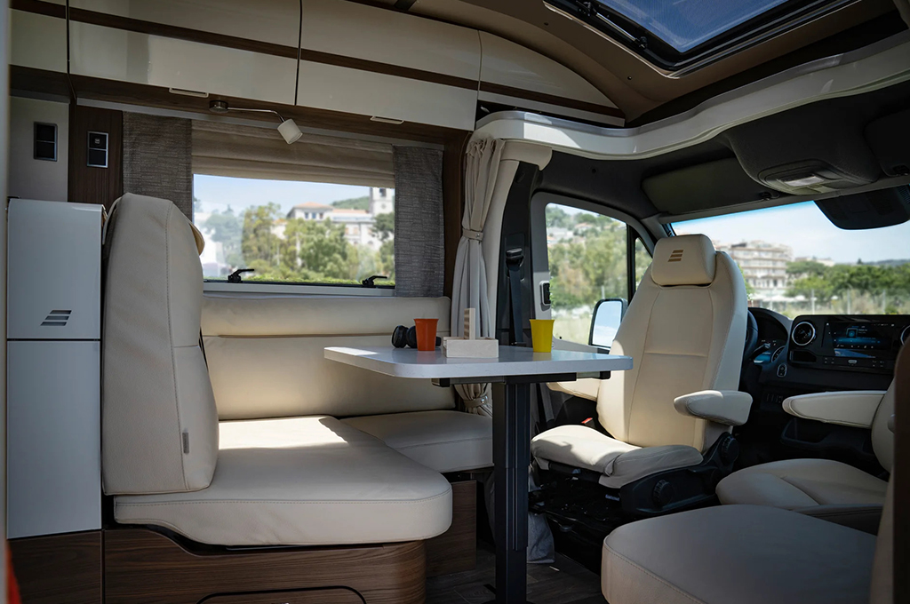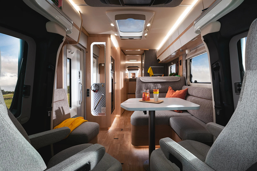 L'estetica esterna è caratterizzata da un design sportivo e aerodinamico, con un frontale mansarda piatto che migliora l'agilità su strada e riduce il consumo di carburante. La zona posteriore sagomata in vetroresina con portafari integrato e vasca garage autoportante completa l'eleganza del veicolo. Gli interni, grazie a un sistema di illuminazione avanzato, appaiono particolarmente spaziosi e accoglienti, con numerose soluzioni di stivaggio che rendono il viaggio confortevole.