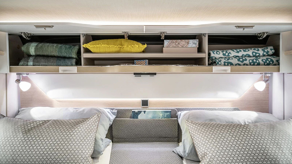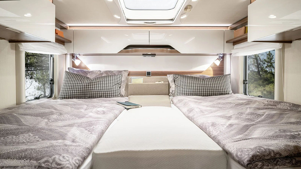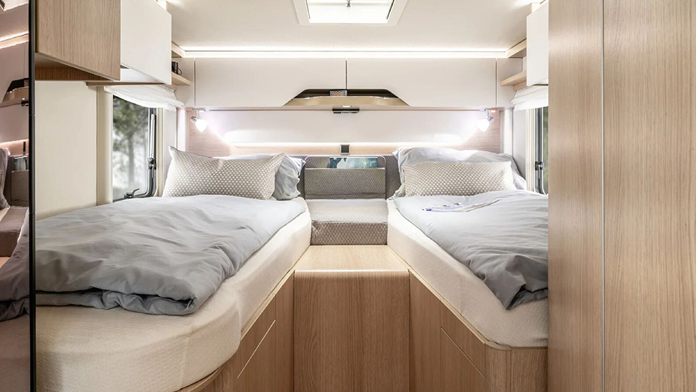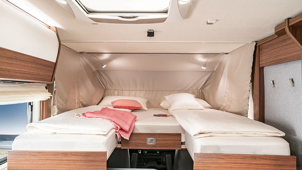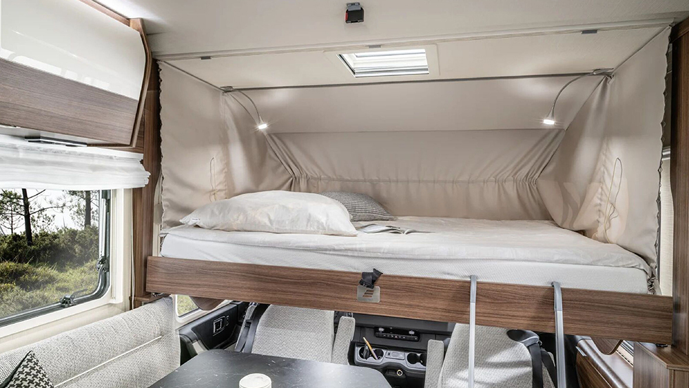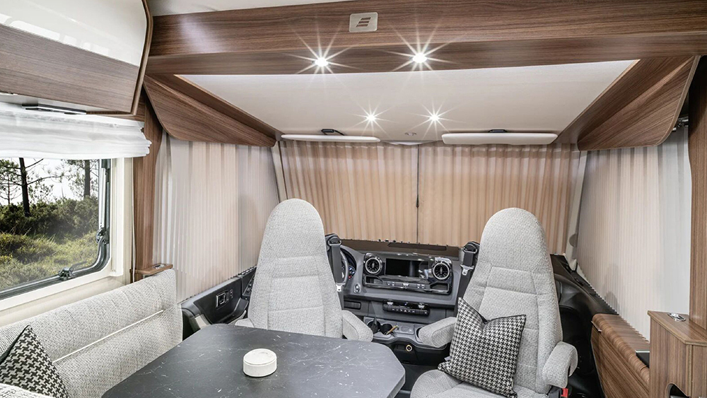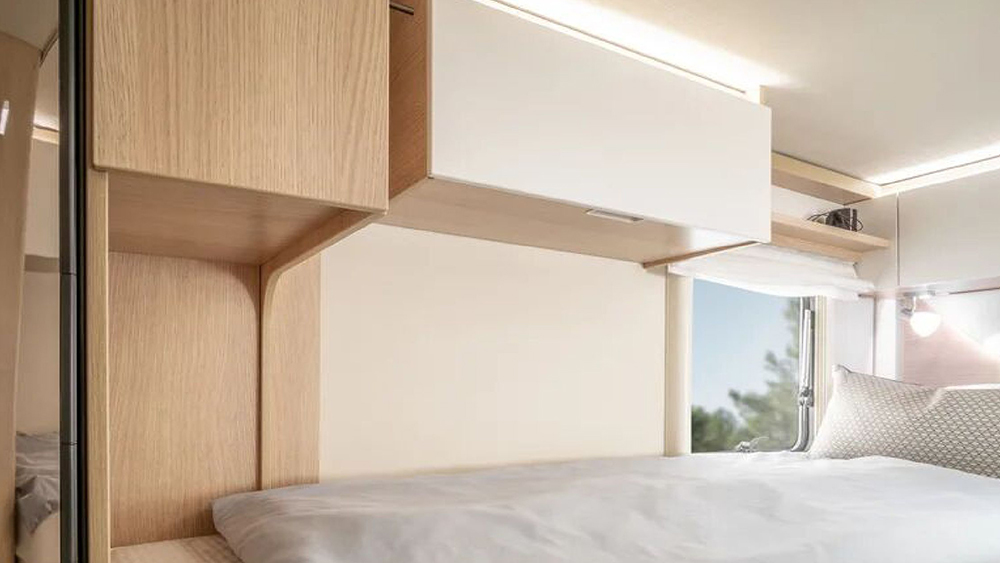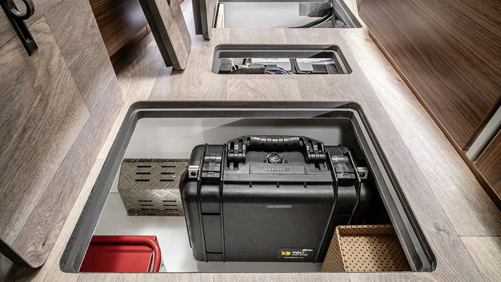 Il telaio SLC esclusivo e innovativo offre una superficie di calpestio piana che assicura stabilità di guida e comfort grazie alle sospensioni a ruote indipendenti, mentre il doppio pavimento multifunzione alto 36 cm fornisce un'enorme capacità di stivaggio, un isolamento superiore e una resistenza al freddo assoluta.