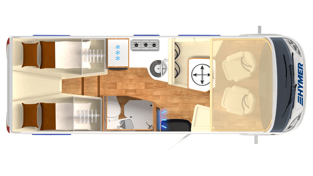 L'interno è uno spazio di eleganza moderna e distintiva, con un design che sposa linee pulite e illuminazione ambiente, offrendo un'ampia sensazione di spazio e un'atmosfera piacevole. La HYMER Connect App di serie permette un controllo intuitivo dei componenti della cellula da qualsiasi luogo, garantendo un livello di connettività e controllo senza precedenti.