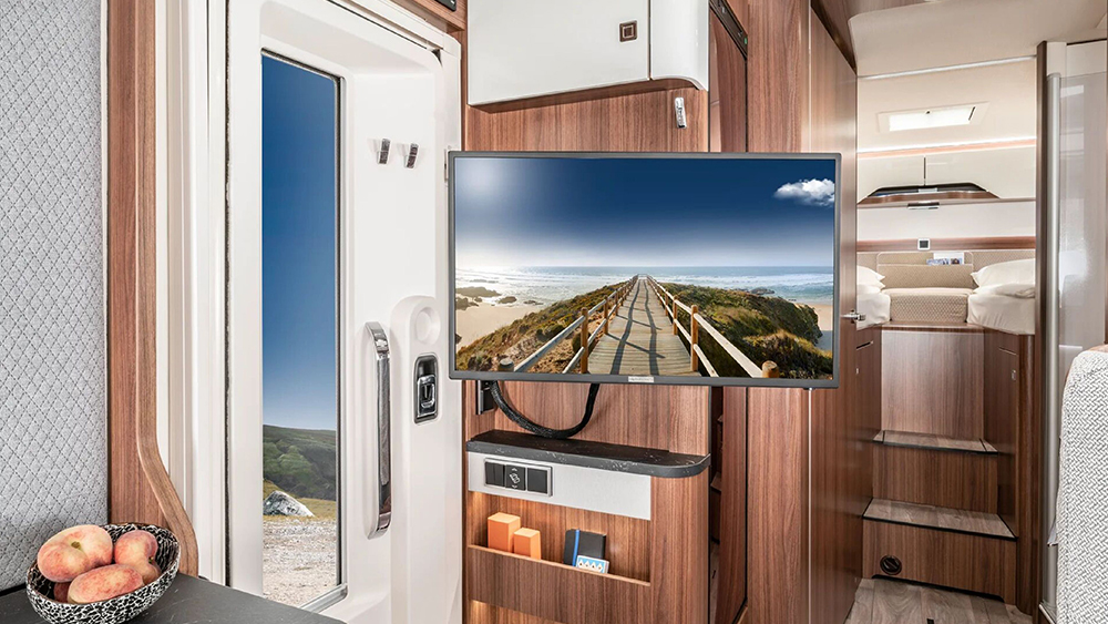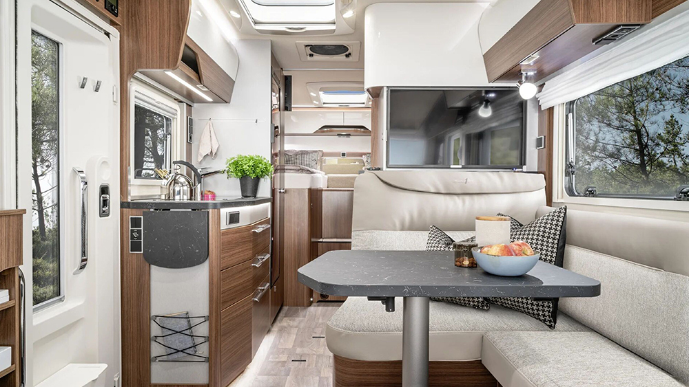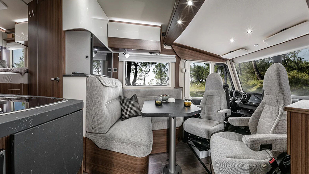 Esternamente, Hymer B-Klasse ModernComfort I 600 si distingue per un look automobilistico di classe, con una calandra nero lucida e dettagli cromati disponibili su richiesta, mentre gli interni, arredati con stile, offrono una piacevole luce diurna, materassi comfort deluxe e una zona giorno moderna, trasmettendo una sensazione di spazi estremamente aperti e generosi.