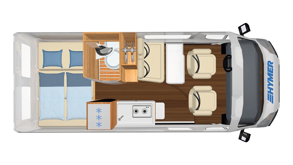 Una delle caratteristiche distintive di Hymer Free è la sua motorizzazione Fiat potente e efficiente, che garantisce prestazioni affidabili e consumi contenuti. Inoltre, grazie al tetto a soffietto opzionale, il veicolo offre una esclusiva separazione in due ambienti, consentendo di godere di spazi distinti per il giorno e la notte.