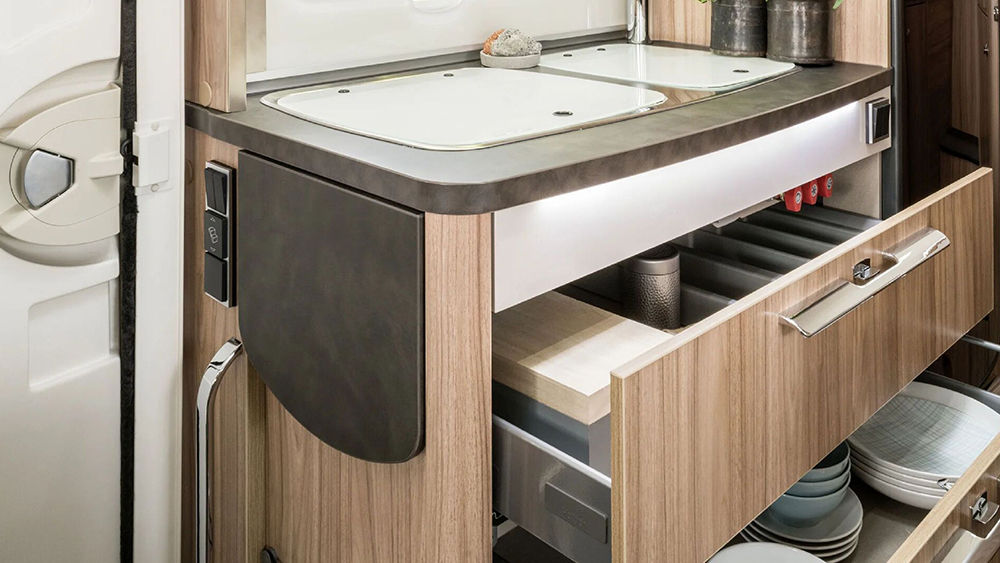 Il design distintivo degli esterni e degli interni di Exsis-i cattura l'attenzione per la sua forma inconfondibile e le funzionalità sofisticate. Il suo design aerodinamico non solo conferisce un aspetto sportivo, ma assicura anche un consumo ridotto del carburante, una guida silenziosa e una visibilità perfetta. Grazie all'utilizzo delle migliori tecnologie nella costruzione della carrozzeria, Hymer Exsis-i garantisce eccezionali valori di isolamento, stabilità e durata.