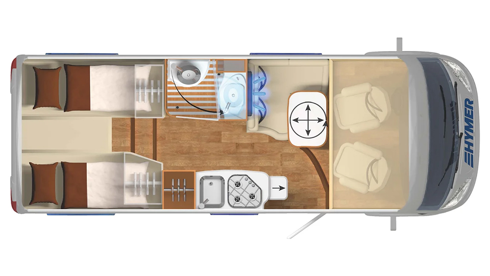 Uno dei punti di forza di questo Hymer è il garage con porte grandi su entrambi i lati, che consente di trasportare comodamente attrezzature e accessori aggiuntivi. Inoltre, tutti i serbatoi e gli impianti nel motorcaravan sono isolati e riscaldati, garantendo comfort in qualsiasi condizione climatica.