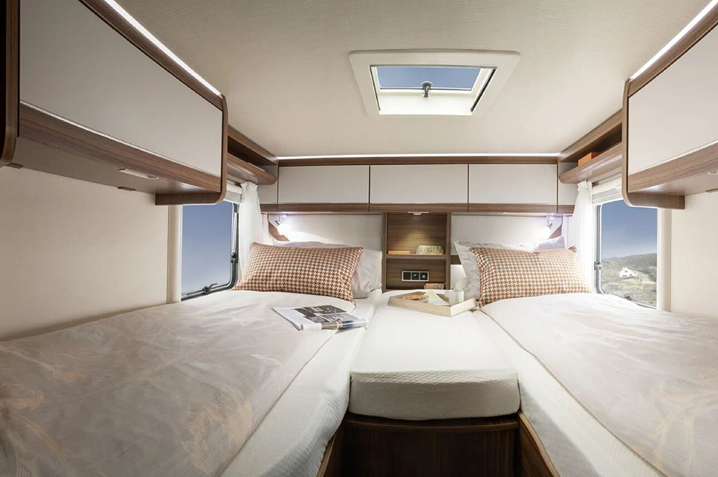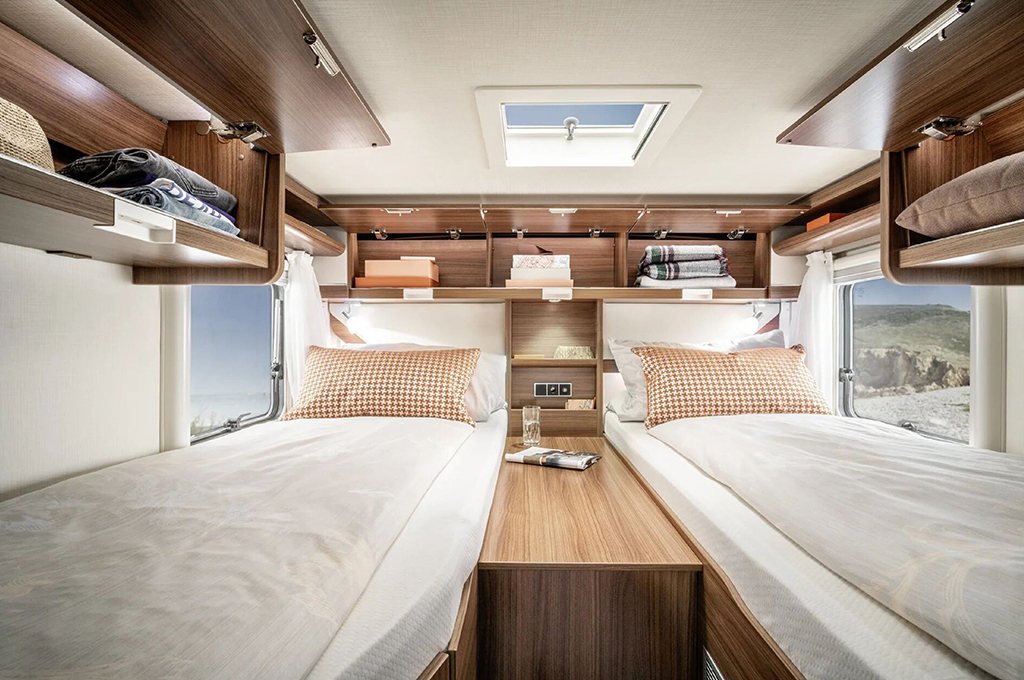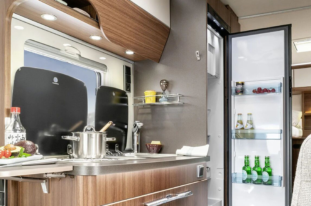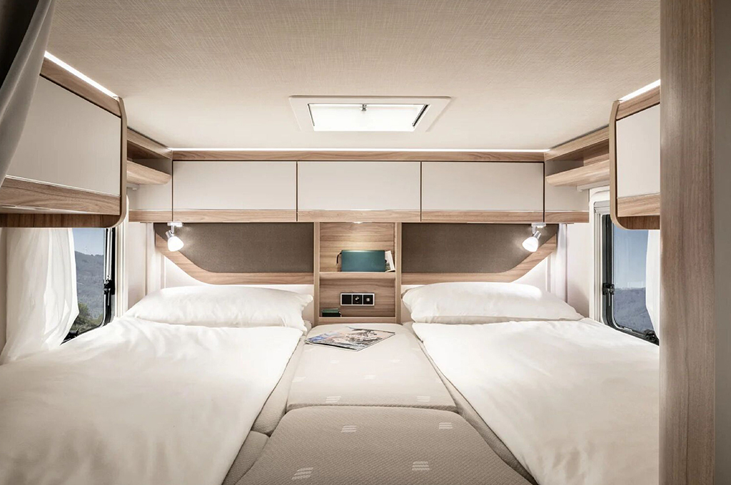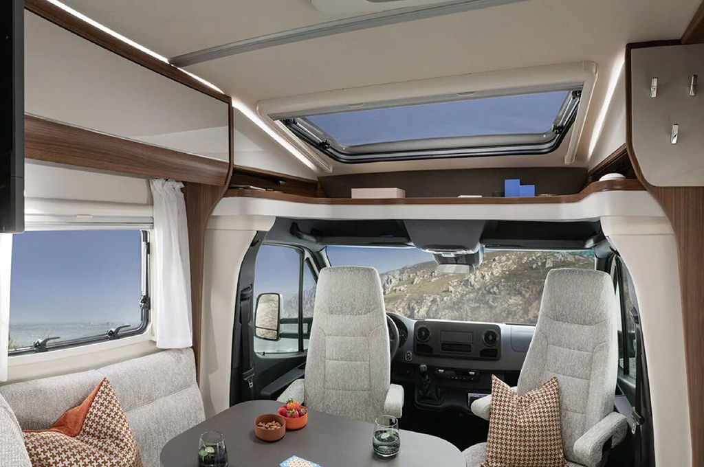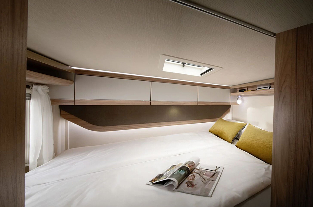 La cucina è progettata con numerosi vani portaoggetti e dettagli di stile, rendendo superfluo andare al ristorante. Nella zona notte, il sistema di molle a disco assicura un riposo regale, con tanto spazio a disposizione e un letto di grandi dimensioni grazie alla parte intermedia aggiuntiva.