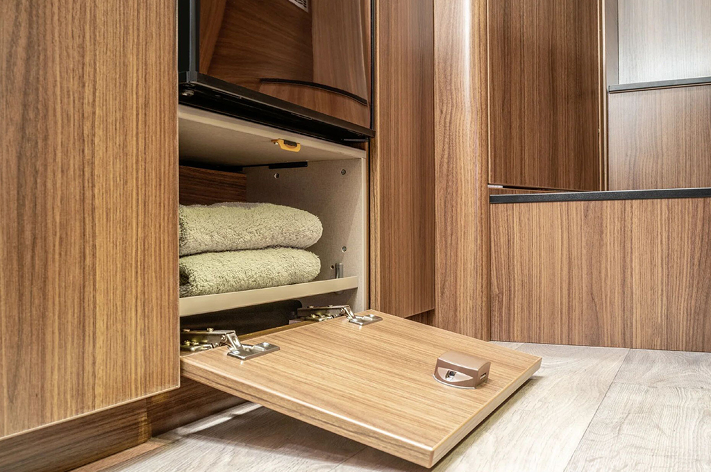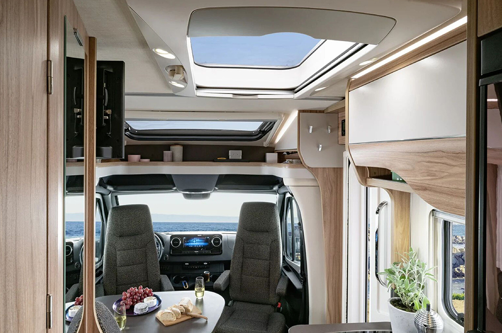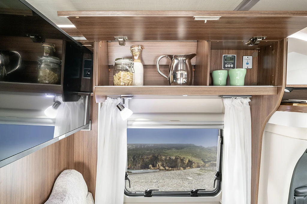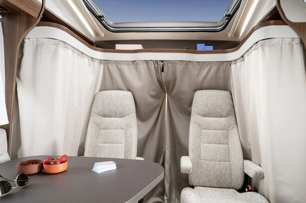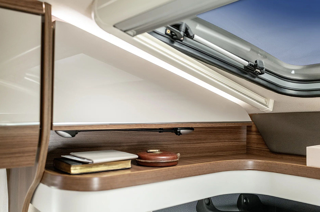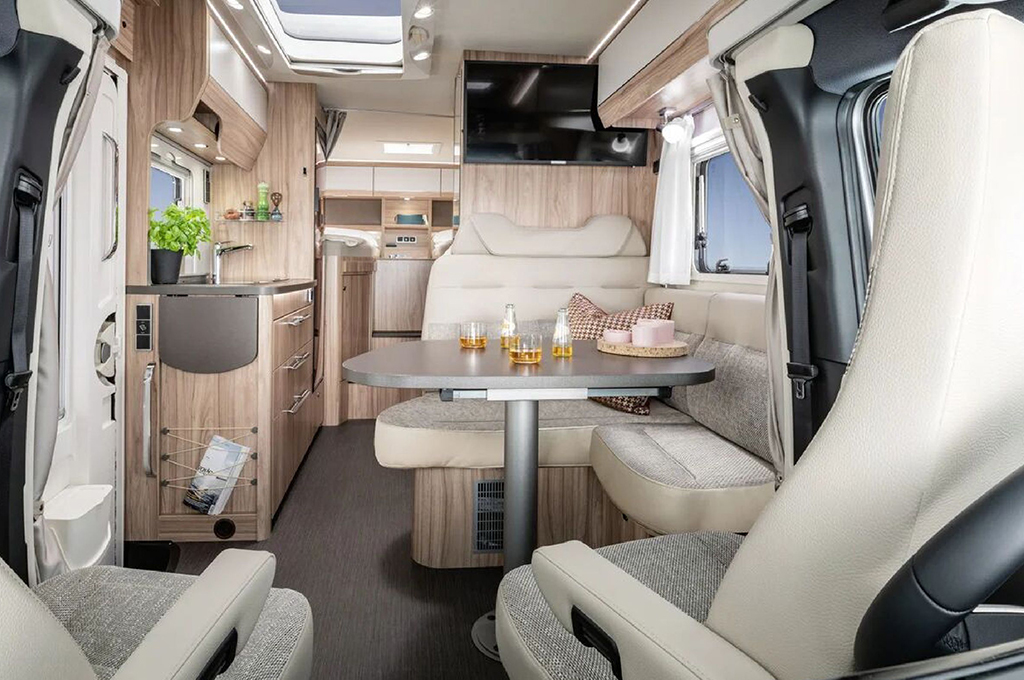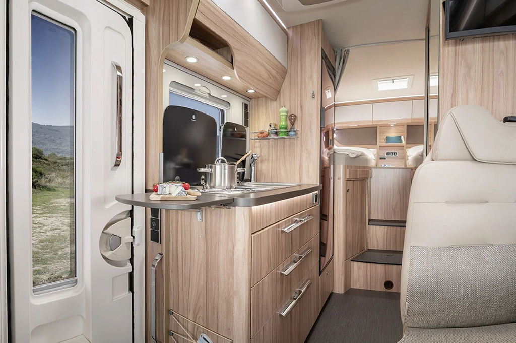 La cucina è progettata con numerosi vani portaoggetti e dettagli di stile, rendendo superfluo andare al ristorante. Nella zona notte, il sistema di molle a disco assicura un riposo regale, con tanto spazio a disposizione e un letto di grandi dimensioni grazie alla parte intermedia aggiuntiva.