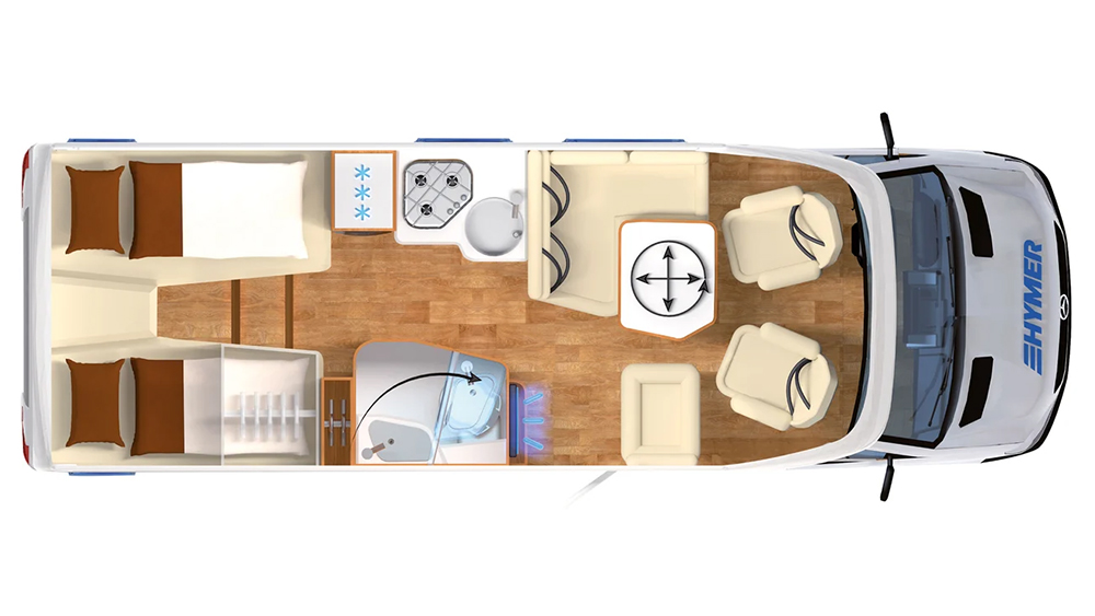Gli interni del Tramp S 585 combinano finiture lucide e satinate con elementi in legno, creando un'atmosfera accogliente e sofisticata. Numerosi spazi di stivaggio intelligentemente integrati sotto i letti e nelle panche assicurano che tutto abbia il suo posto, mentre le opzioni di letto queen-size, letti singoli o letto basculante offrono flessibilità personalizzata per ogni viaggiatore. Con il suo design rinnovato e la praticità senza compromessi, l'HYMER Tramp S 585 è il compagno ideale per gli appassionati di viaggio che desiderano esplorare il mondo con stile e comfort.