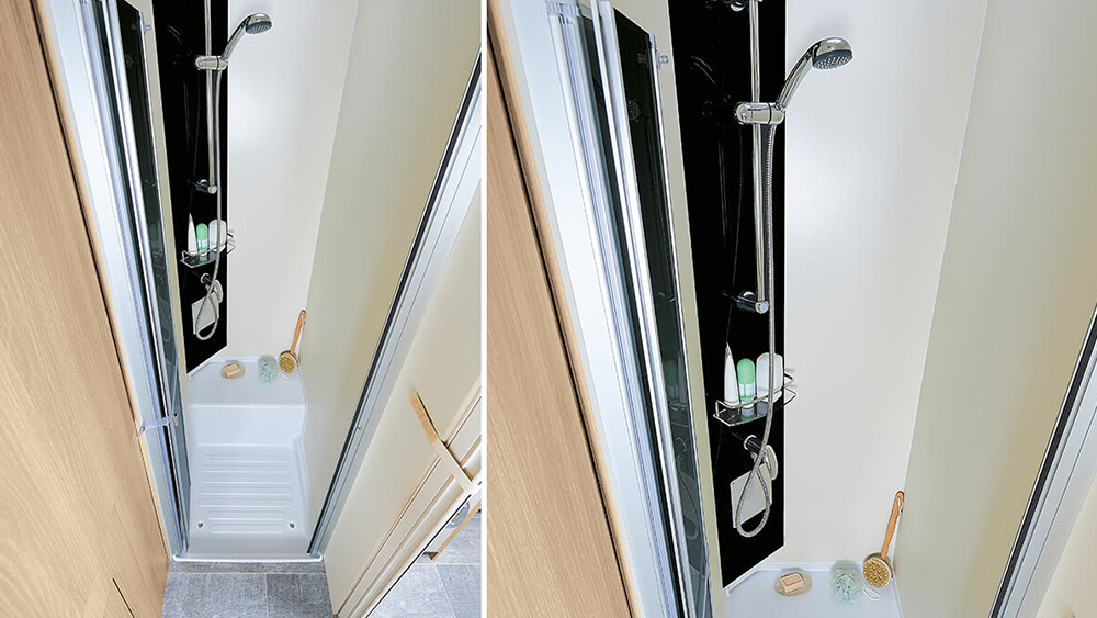 Il bagno separato dietro il camper aggiunge un tocco di lusso e privacy, offrendo un ambiente confortevole e funzionale per la cura personale durante i viaggi. Il combinato riscaldamento / scaldacqua Combi DIESEL assicura comfort termico e acqua calda in qualsiasi momento, migliorando l'esperienza di viaggio in tutte le stagioni.