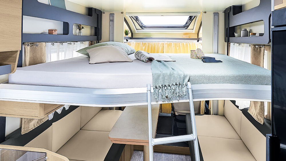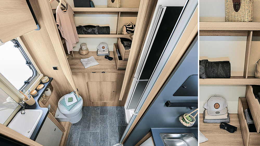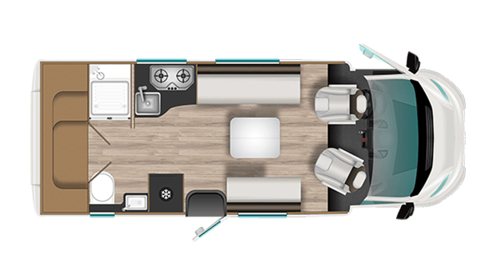Con quattro posti letto di serie, inclusi un letto basculante elettrico integrato e un letto supplementare dinette, il PC640 Spirit Edition offre soluzioni di sonno flessibili per ospitare comodamente fino a quattro persone. L'accesso al gavone dal bagno facilita il carico e lo scarico delle merci, aggiungendo praticità al design.