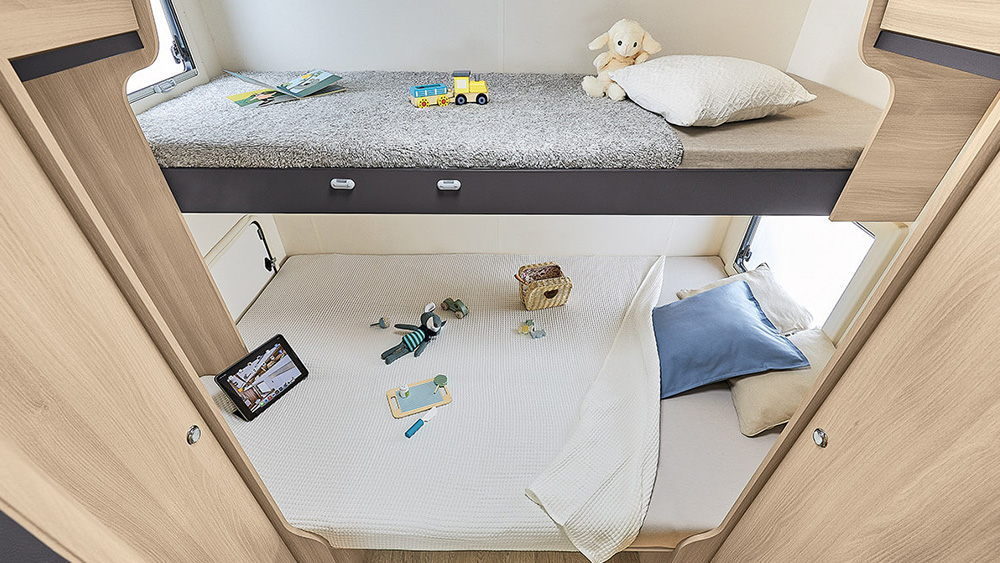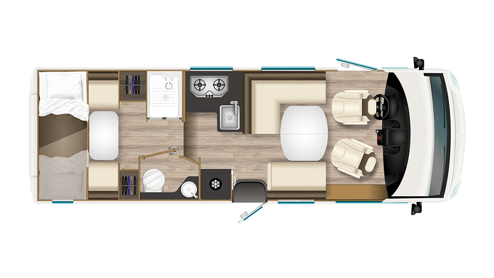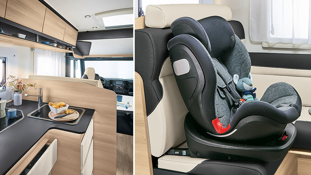 Per quanto riguarda la sicurezza e la praticità, la telecamera di retromarcia assicura manovre più sicure e precise, mentre la porta cellula con serratura a 2 punti, finestra fissa e pattumiera integrata aggiunge un ulteriore livello di sicurezza e comfort.