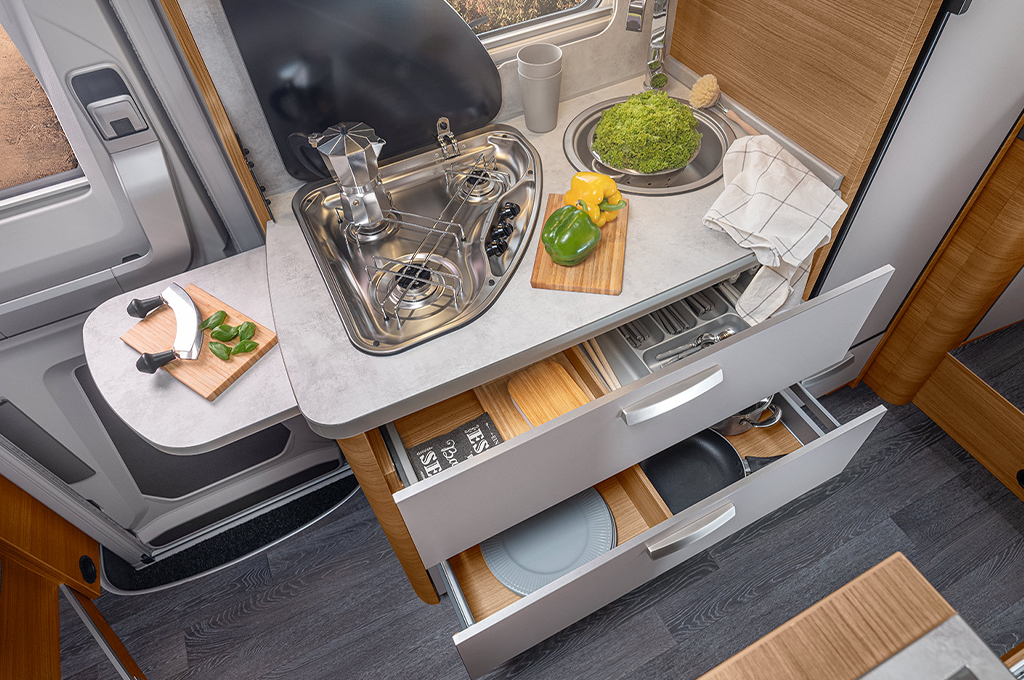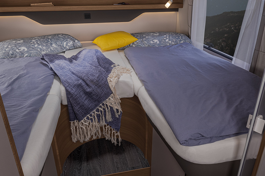 Una delle caratteristiche distintive del L!VE I è il letto basculante integrato, che offre comfort e praticità senza compromessi. Grazie a questo innovativo sistema, è possibile trasformare lo spazio living in una confortevole zona notte in pochi istanti, garantendo un riposo rigenerante durante le vostre avventure on the road.