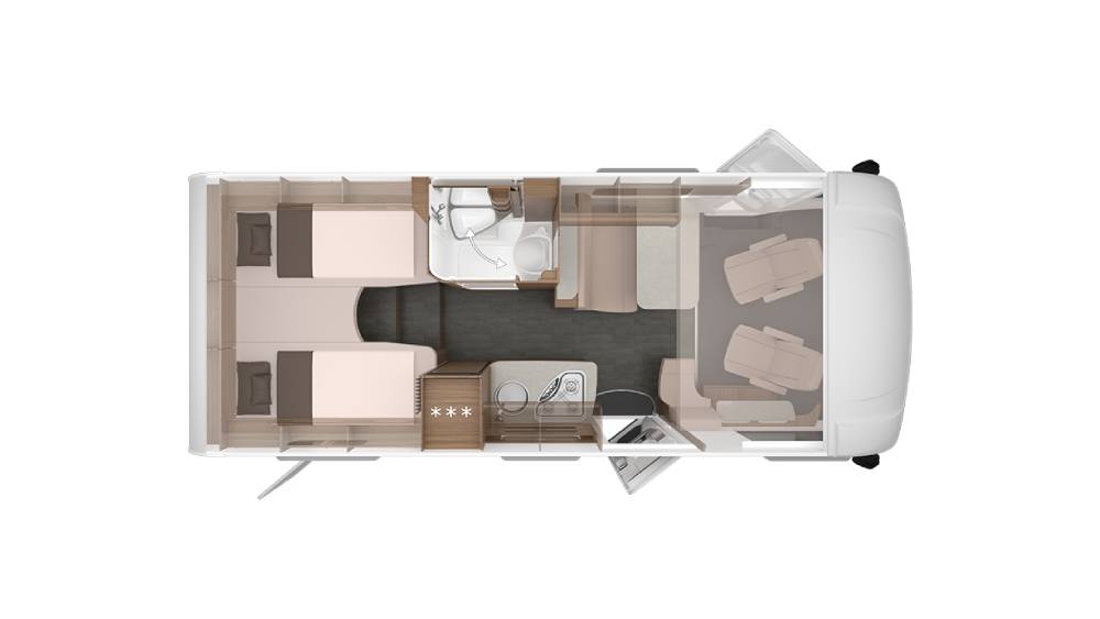Questo camper è progettato per offrire un'esperienza di viaggio senza compromessi, con posti letto per fino a 5 persone distribuiti strategicamente tra la zona notte anteriore e posteriore. La zona abitativa è caratterizzata da materiali di alta qualità e finiture dettagliate, inclusi sedili AGUTI Premium e una cucina completamente attrezzata con frigorifero da 142 litri.