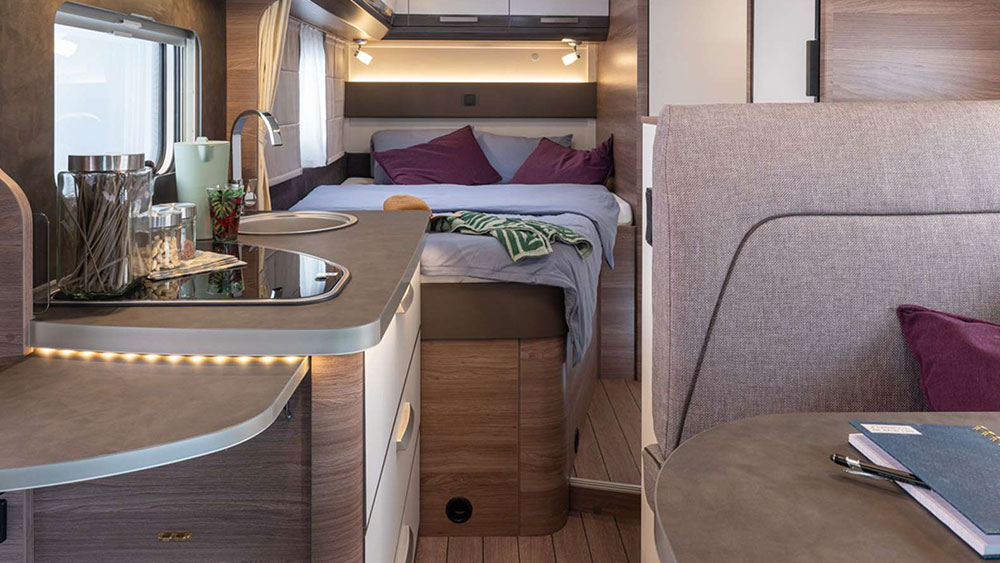 Il design dinamico di Knaus L!VE TI cattura l'attenzione, mentre l'interno moderno e ben progettato offre un ambiente accogliente e confortevole. Con fino a quattro posti letto, c'è spazio sufficiente per tutta la famiglia o per gli amici.