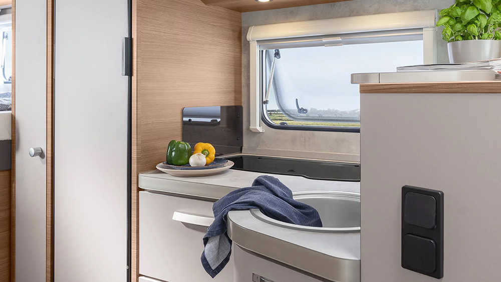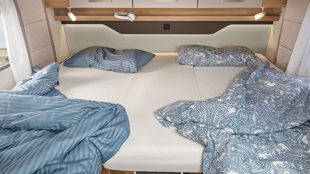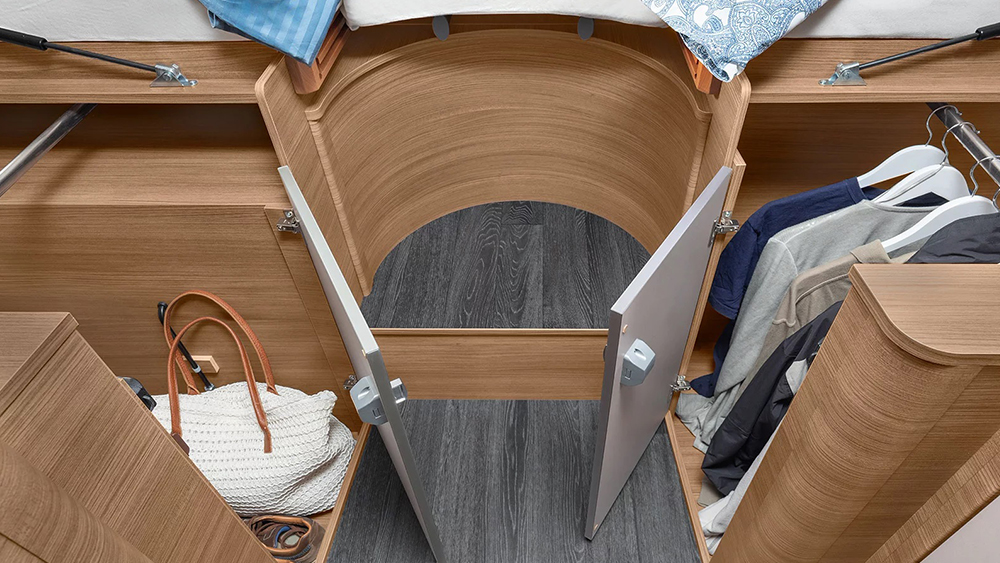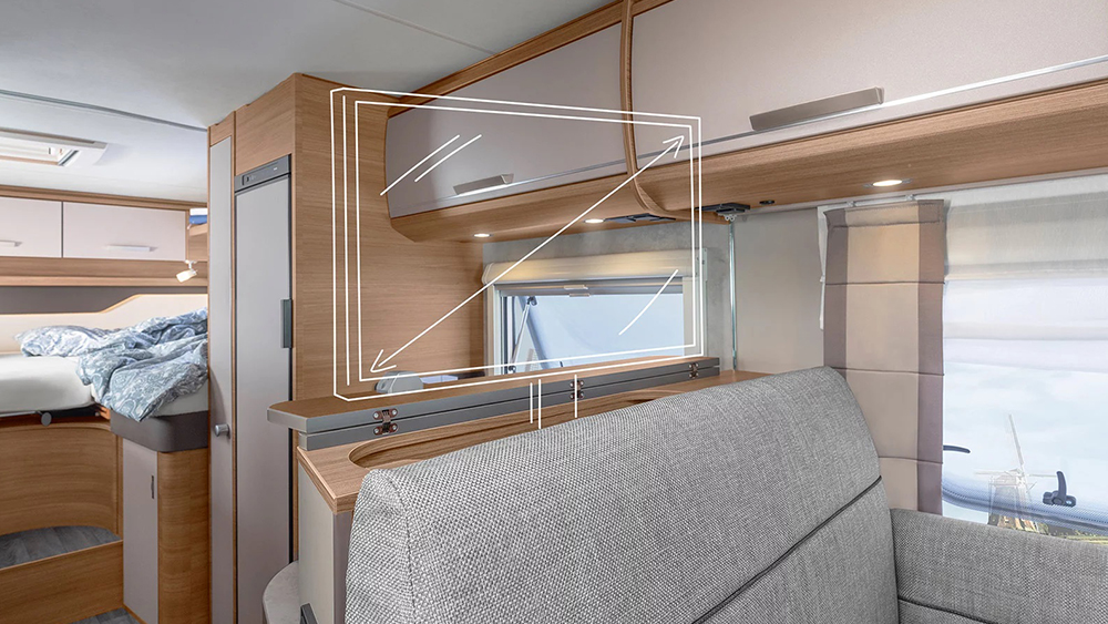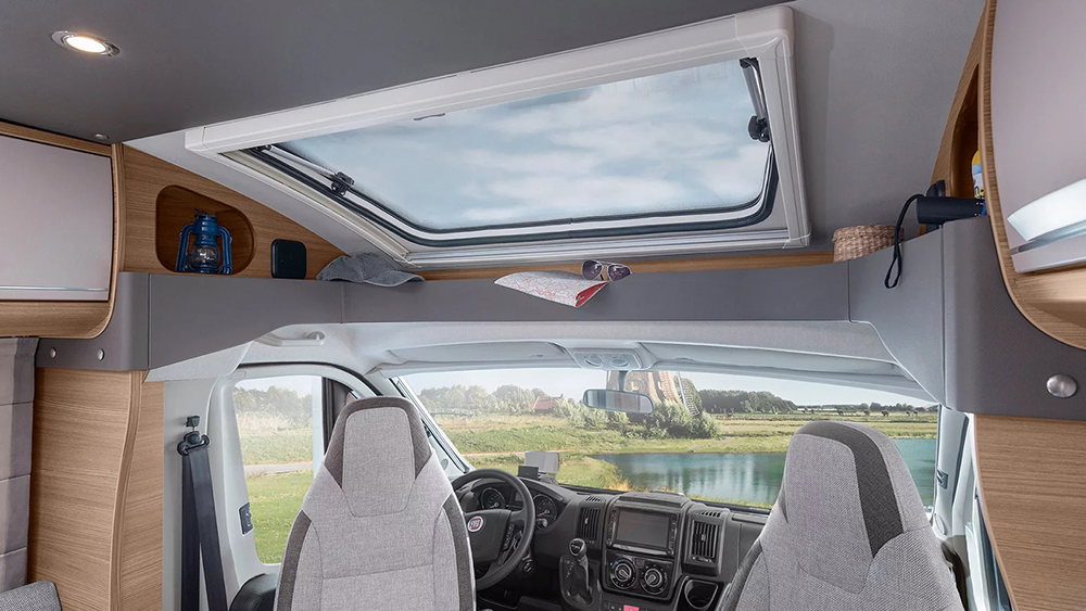 La struttura robusta e ben isolata del Knaus L!VE TI 700 MEG assicura comfort in qualsiasi condizione meteorologica. Con uno spessore di 32 mm per il tetto, 31 mm per le pareti e 40 mm per il pavimento, questo camper offre un ambiente interno confortevole e protetto anche nelle condizioni più estreme. Le finestre SEITZ S7 e gli oblò trasparenti offrono una ventilazione ottimale e una vista panoramica mozzafiato durante il viaggio.