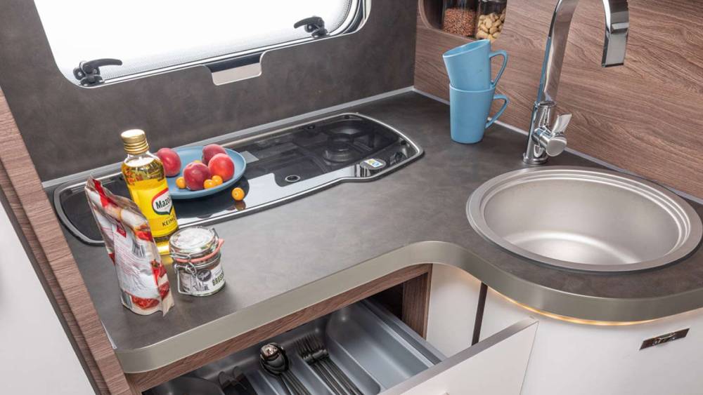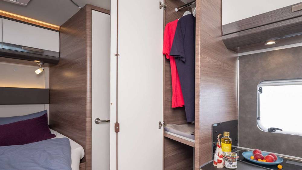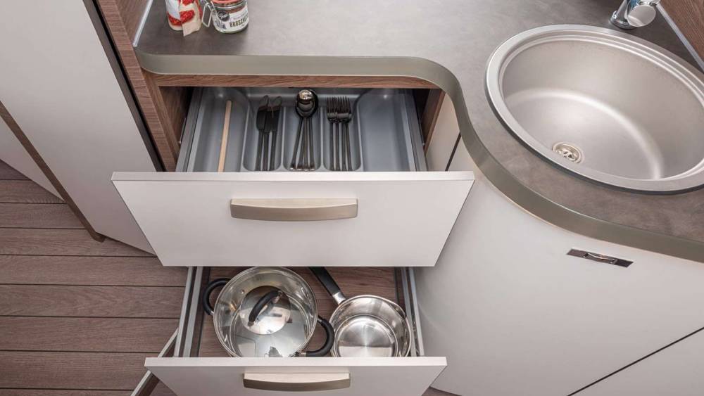 Knaus L!VE WAVE 650 MF è dotato di una serie di caratteristiche aggiuntive per migliorare ulteriormente l'esperienza di viaggio, tra cui una porta d'ingresso KNAUS KOMFORT con sistema di chiusura tipo automobilistico, sportelli di servizio e portellone garage manovrabili con una mano, e un sistema di chiusura con un'unica chiave.