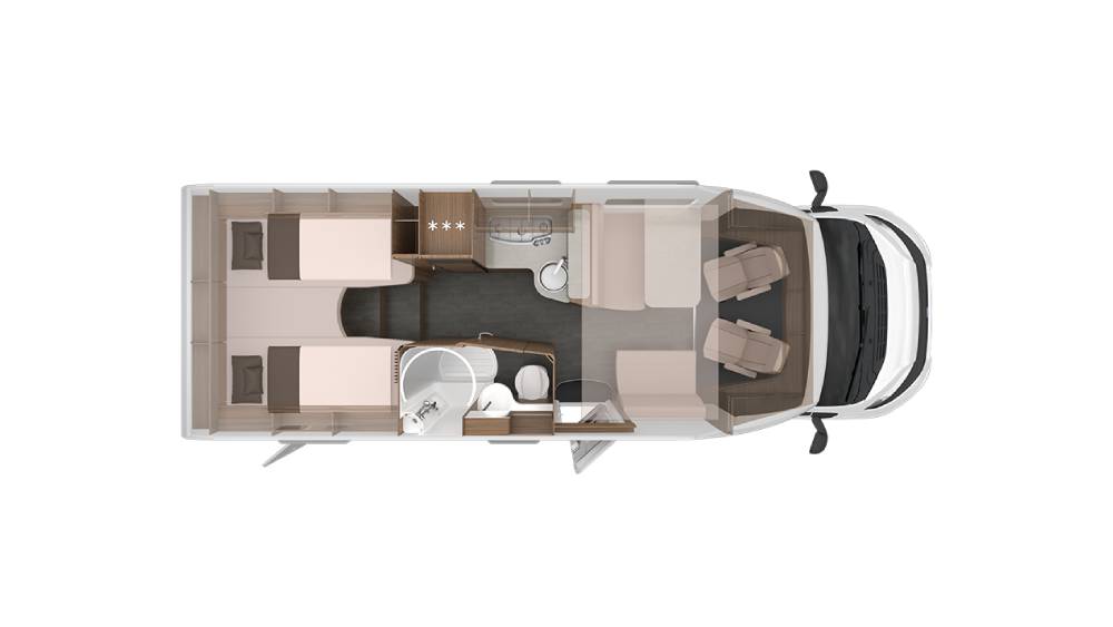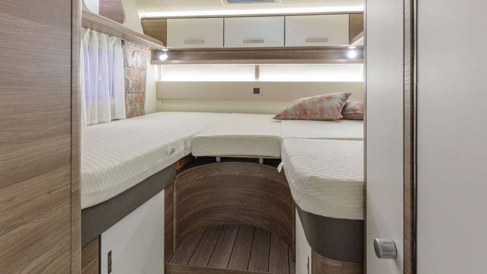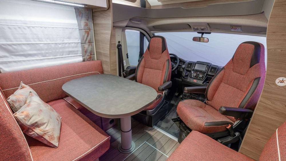 Progettato per ospitare fino a 6 persone, questo camper dispone di 4 posti letto standard, espandibili fino a 6. I letti sono ben distribuiti: un letto basculante anteriore di 194x123 cm, un letto nella parte anteriore di 209x118/84 cm e due letti posteriori di 199x78 cm e 205x78 cm. La zona giorno è dotata di una dinette confortevole con sedili girevoli "Captainchair" FIAT, dotati di braccioli e regolabili in altezza.