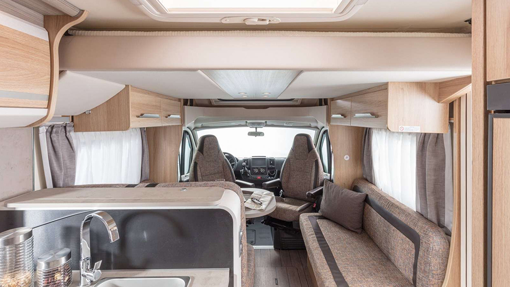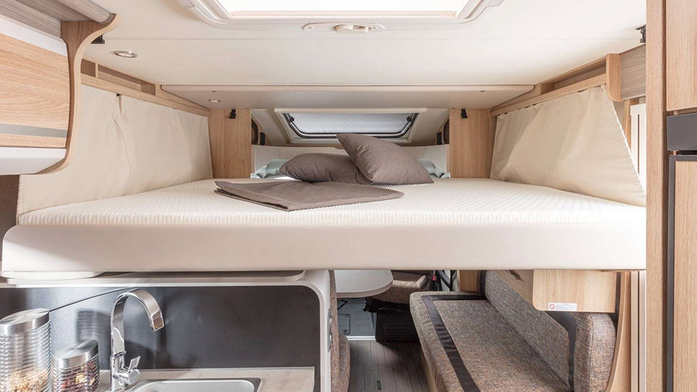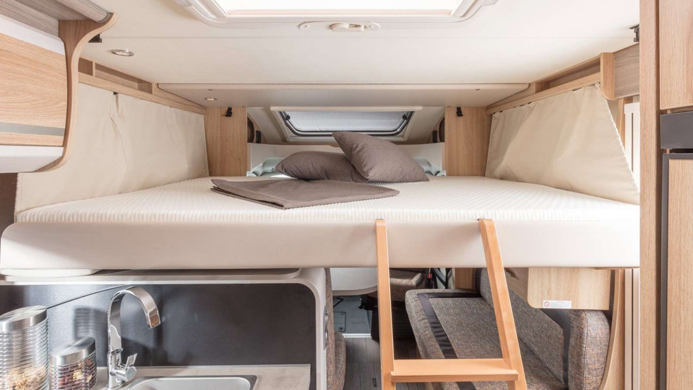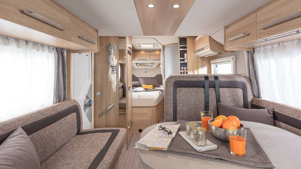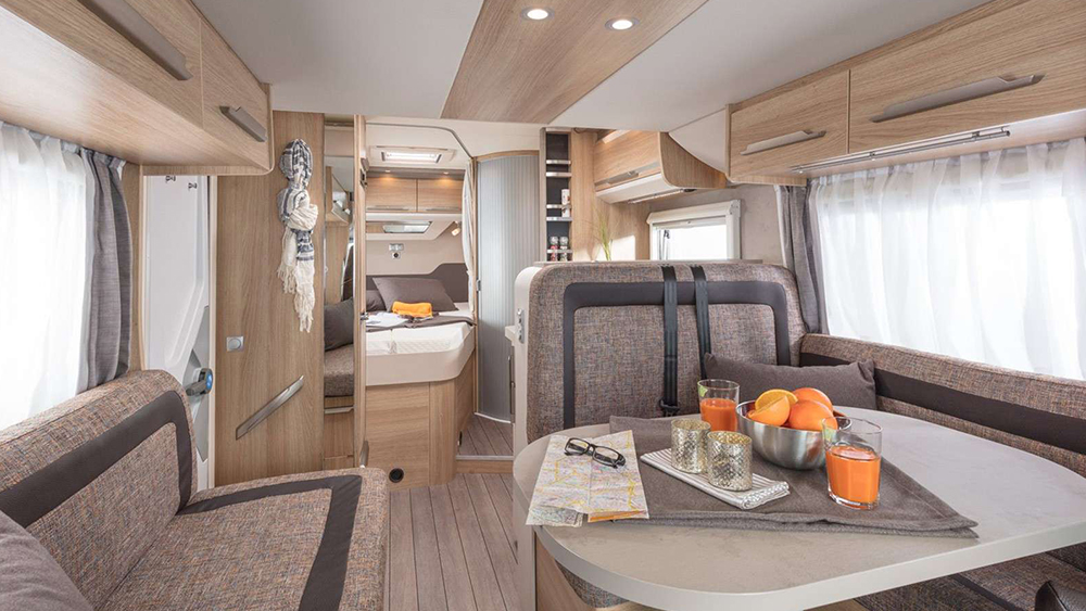 Gli interni sono un connubio di design moderno e funzionalità, dove ogni mobile e dettaglio è curato per esprimere il meglio delle soluzioni abitative su ruote. Il bagno in camera aggiunge un tocco di lusso e comfort, garantendo privacy e praticità durante i viaggi.