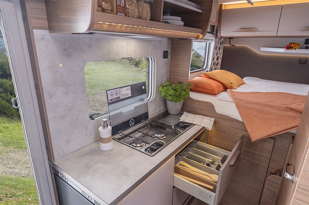 Ciò che rende il Tourer Van veramente unico sono le sue soluzioni abitative innovative. Con due opzioni distintive, la 500 LT e la 500 MQ, offre un'ampia varietà di configurazioni per adattarsi alle esigenze di ogni viaggiatore. La 500 LT presenta un bagno girevole e una dinette face‐2‐face, mentre la 500 MQ offre un garage posteriore di pieno valore e un bagno Xpand multifunzione, aggiungendo praticità e versatilità alla tua esperienza di viaggio.