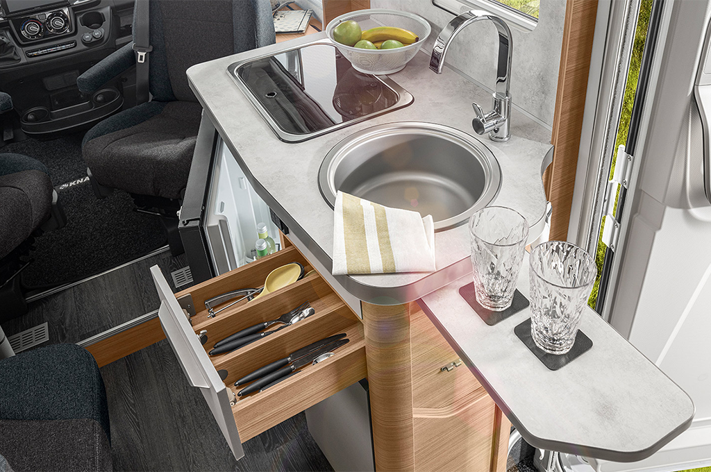 Knaus Van I è una testimonianza tangibile dell'approccio innovativo e meticoloso di Knaus nel settore dei veicoli ricreazionali. Con una larghezza ultracompatta di soli 2,20 metri, questo camper compatta un'enorme dose di funzionalità e comfort in uno spazio limitato. Nonostante la sua compattezza, il Van I non sacrifica nulla in termini di design automobilistico, offrendo un'estetica moderna e accattivante che si distingue sulla strada.