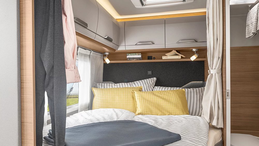 All'interno, lo spazio è ben sfruttato, con una larghezza interna di 205 cm che consente una circolazione agevole. L'altezza interna di 196 cm crea un ambiente arioso e confortevole. Con posti letto omologati per quattro persone e una zona giorno flessibile, offre versatilità per adattarsi alle esigenze di viaggio di ogni famiglia o gruppo.