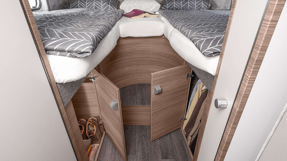 L'impiego di materiali di alta qualità garantisce una costruzione solida e resistente, con spessori adeguati per tetto, pareti e pavimento. L'acqua è gestita efficientemente grazie ai serbatoi di recupero acque grigie e acque chiare, mentre l'impianto elettrico è dotato di numerose prese 230 V e USB per soddisfare le esigenze di connettività dei viaggiatori moderni.