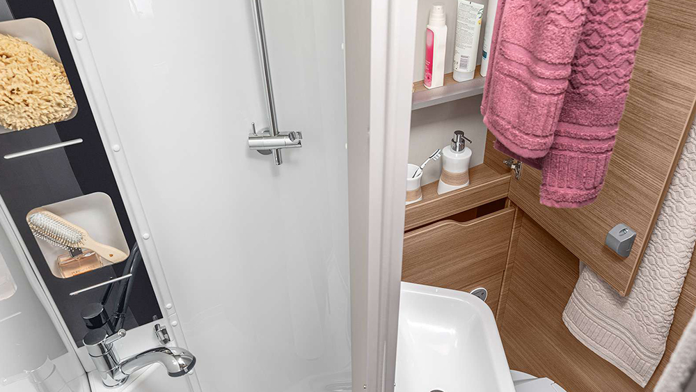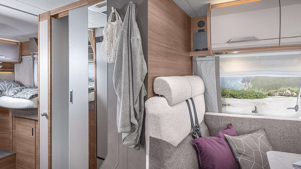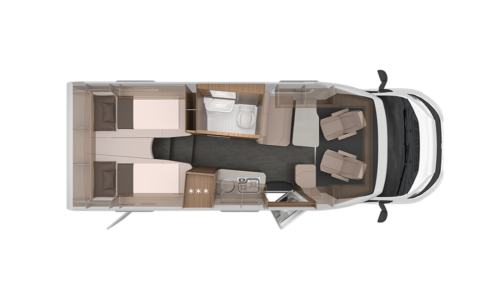 La zona abitativa è progettata per offrire il massimo comfort e praticità. Con cinture di sicurezza con ancoraggio a 3 punti, due posti letto nella parte posteriore e un letto aggiuntivo nella parte anteriore, il Van TI 650 MEG può ospitare comodamente fino a quattro persone. La cucina è completa di frigorifero da 142 litri, ideale per conservare alimenti e bevande durante i viaggi.