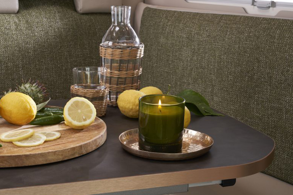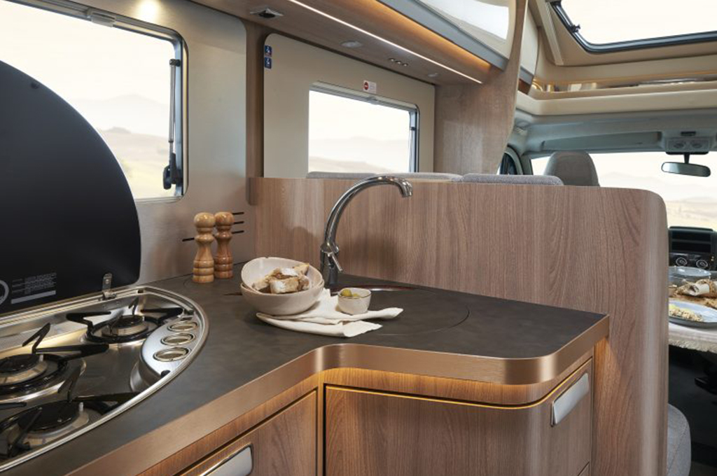 - Impianto illuminotecnico di alta qualità, multivello e interamente a LED, con comandi plurivie e dimmer, con sorgenti luminose dirette e indirette a coprire ogni area dell’abitacolo, compresi gradino di ingresso, armadio guardaroba, pensili, garage posteriore e doppio pavimento