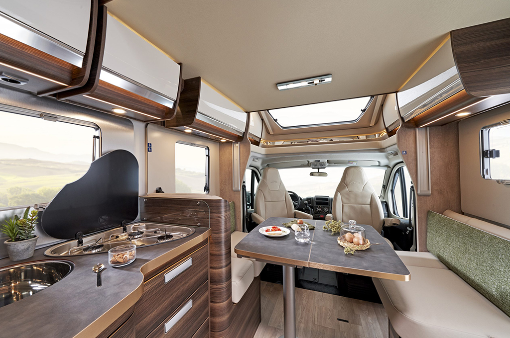 - Impianto elettrico di ultima generazione con tecnologia CI-BUS, alloggiamento per due batterie servizi integrate nel doppio pavimento e facilmente accessibili, pannello di comando digitale con schermo LCD a colori programmabile e multifunzioni