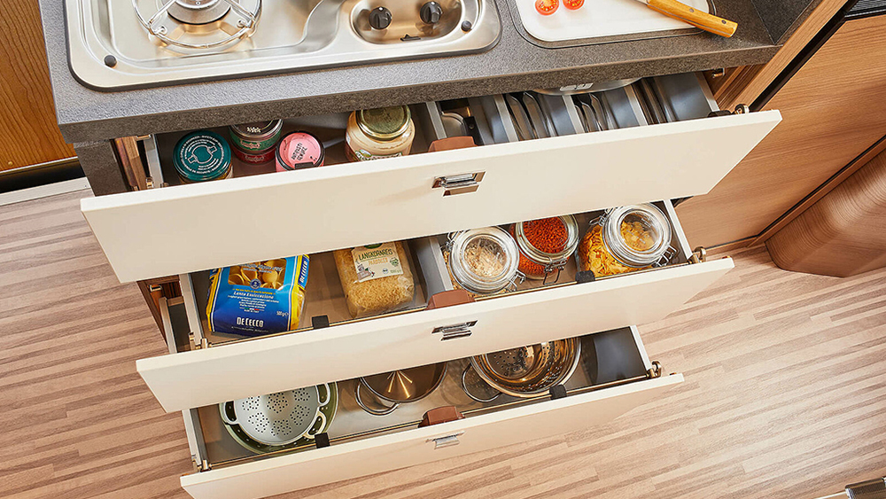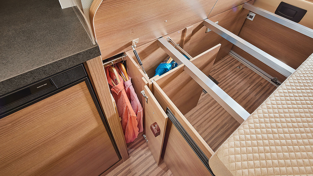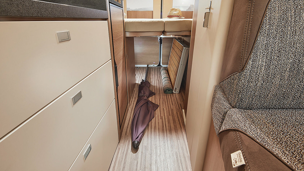 La sua struttura ben progettata ti regala una sensazione di libertà e apertura, con ampi spazi interni che ti permettono di muoverti con agio e di godere di una visuale interna estesa. La cucina Comfort XL è il cuore pulsante di questo veicolo, con un frigorifero a compressore potente da 84 litri che ti consente di conservare i tuoi cibi freschi anche durante le avventure più lunghe.