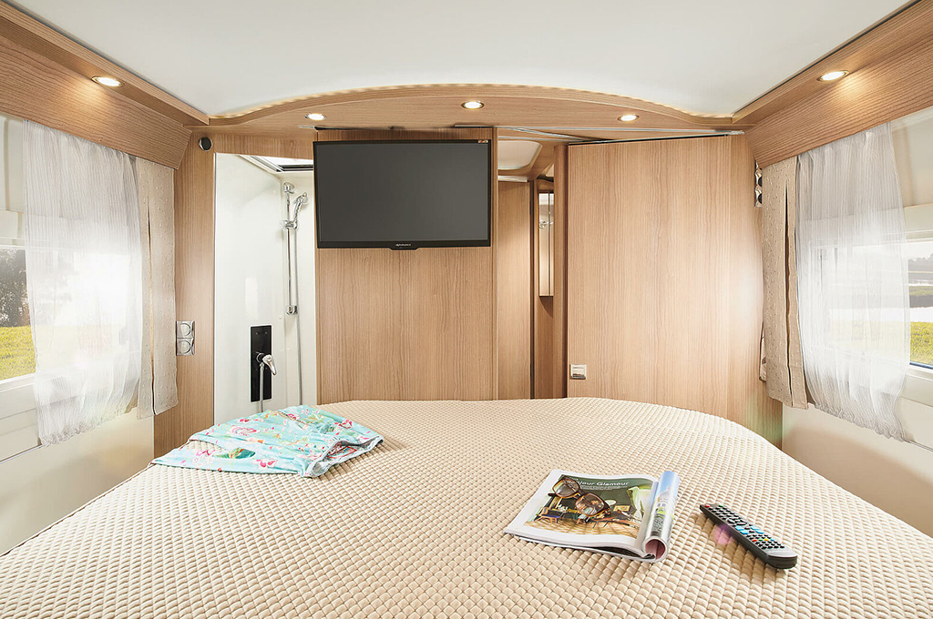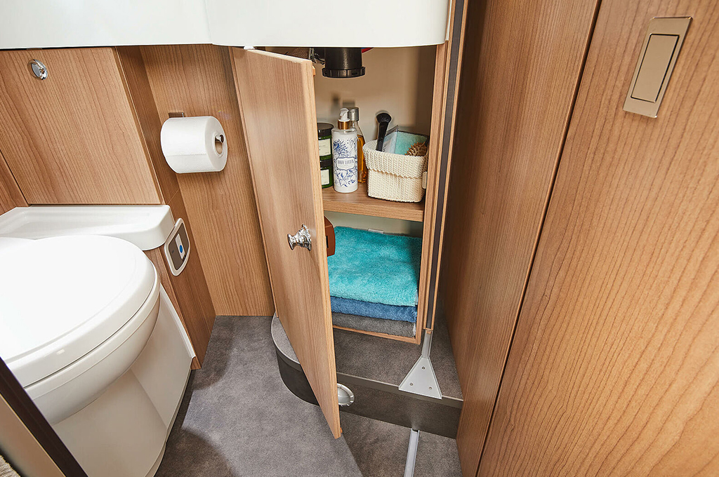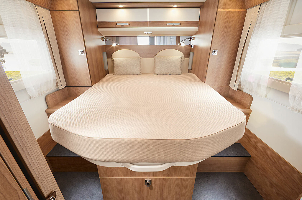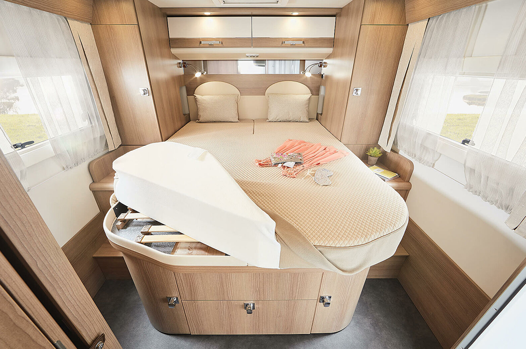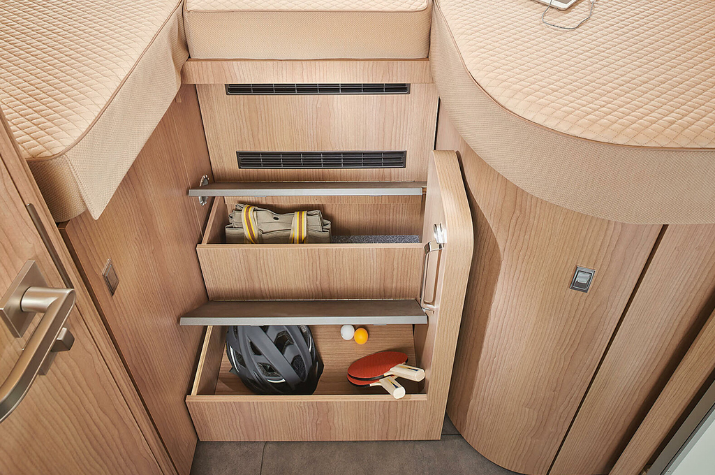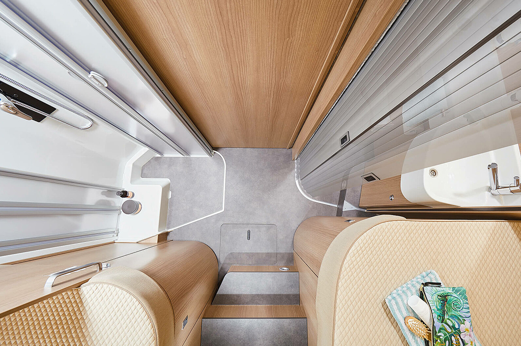 Con una porta della cellula ad ingresso extra basso, doppia chiusura di sicurezza e alzacristalli elettrico, il Malibu offre facilità di accesso e comfort. Il vasto vano di stivaggio nella cantina nel doppio pavimento, accessibile sia dall'esterno che dall'interno, è progettato per massimizzare lo spazio utilizzabile.