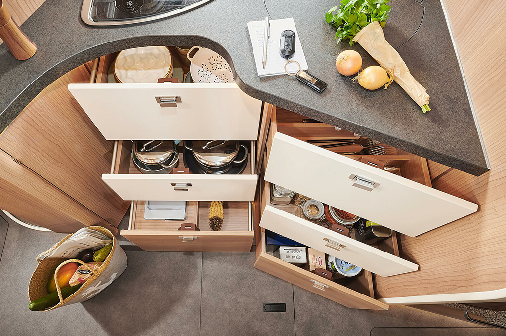 La porta cellula XL "premium two 2.0" è un'esclusiva che si distingue per l'ampliato accesso di 63 centimetri, doppia chiusura di sicurezza, finestrino extra ampio e zanzariera avvolgibile integrata, assicurando comodità e sicurezza senza compromessi. Il tappo del serbatoio del carburante inserito a filo superficie nella fiancata aggiunge un tocco di raffinatezza e praticità.