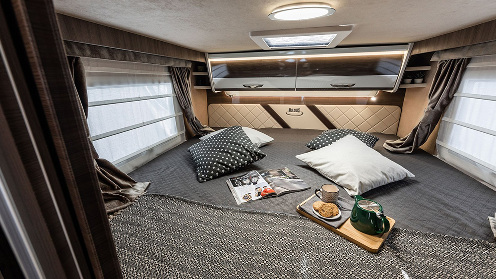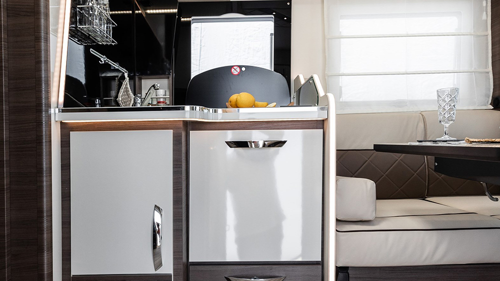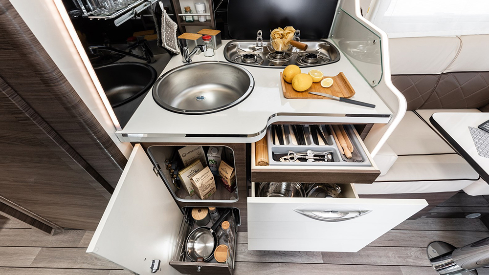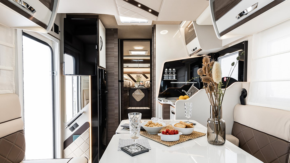 Grazie agli impianti ben progettati, come lo spazio per le bombole e la capacità dei serbatoi, è possibile godersi lunghe permanenze senza preoccupazioni. Il supporto per TV LCD e il sistema CP Plus per il controllo combinato aggiungono un tocco di modernità e comodità al vivere su strada.