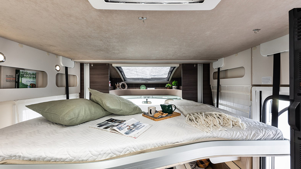 Gli interni riflettono un'attenzione particolare al comfort e alla praticità, con una radio DAB Bluetooth, oblò con ventola per una buona circolazione dell'aria e un sistema di separazione interna giorno/notte per una privacy ottimale.