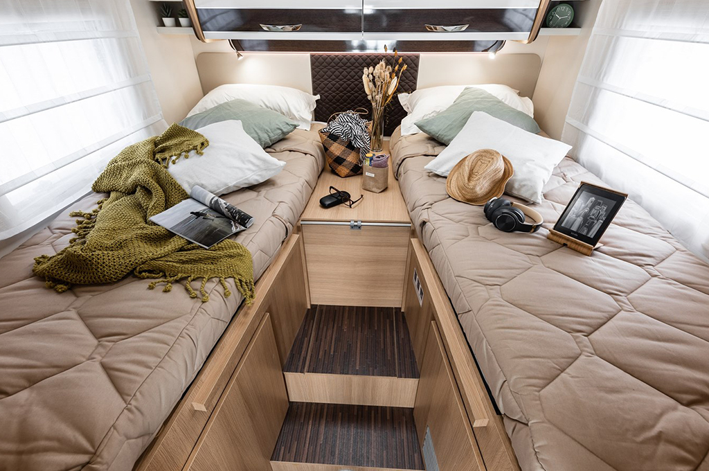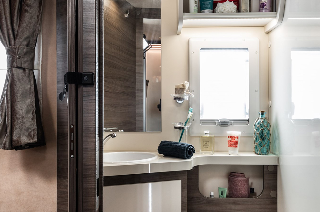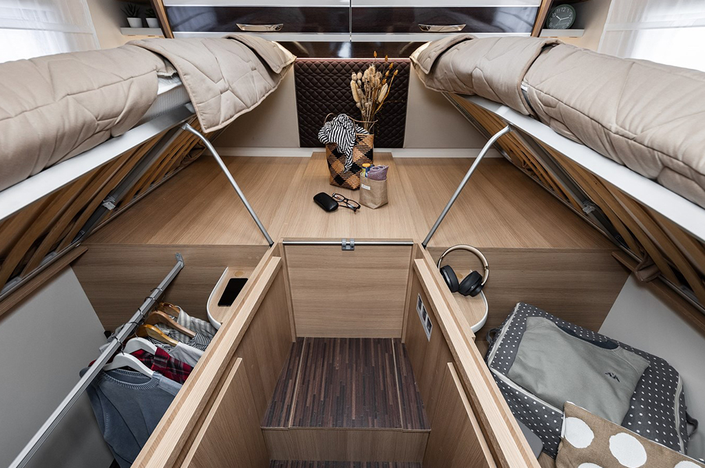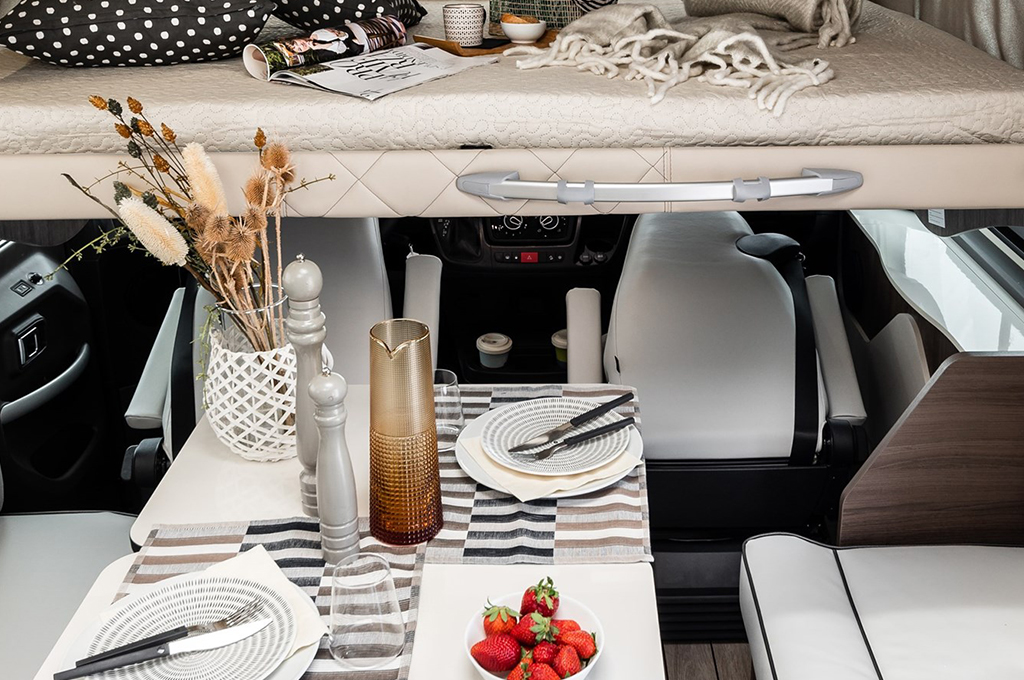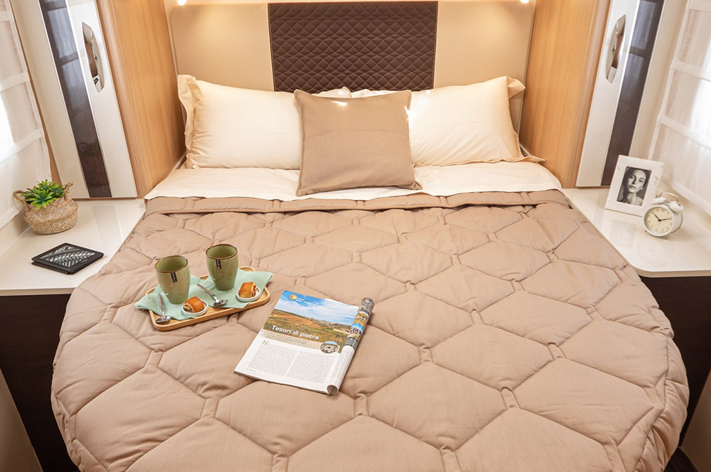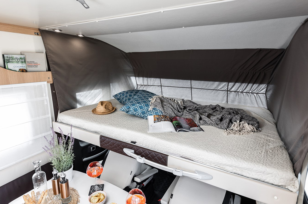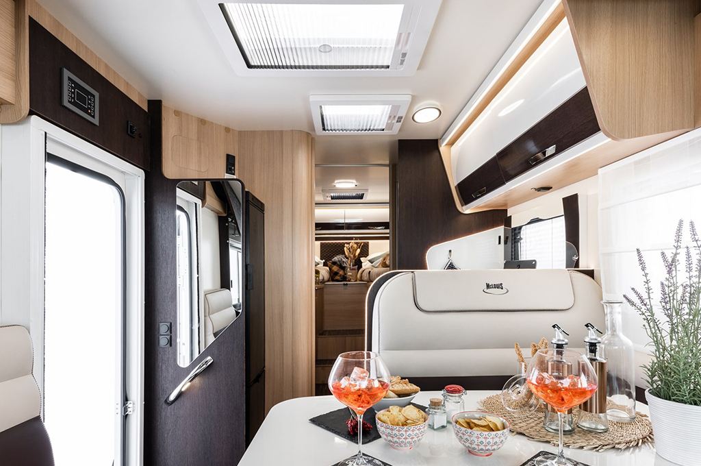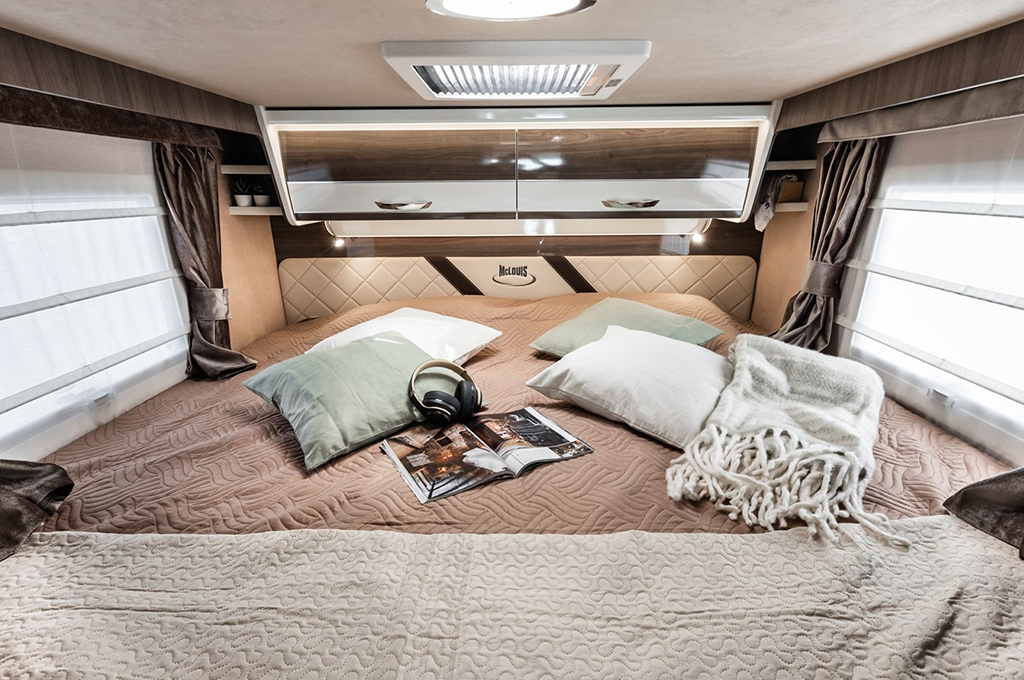 McLouis Nevis Serie 800 rappresenta il massimo del comfort e dello stile nel mondo dei camper. Nel luminoso living, le morbide sedute ergonomiche ad alto comfort offrono un ambiente ideale per rilassarsi o gustare uno snack, mentre nella zona notte il comfort raggiunge il suo apice grazie ai materassi ergonomici extra-comfort e alle reti a doghe. Il rivestimento in materiale soft-touch sulle pareti e sul soffitto crea un ambiente accogliente e ben isolato termicamente e acusticamente.