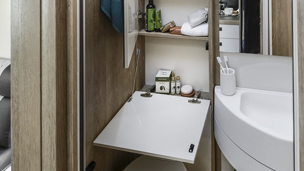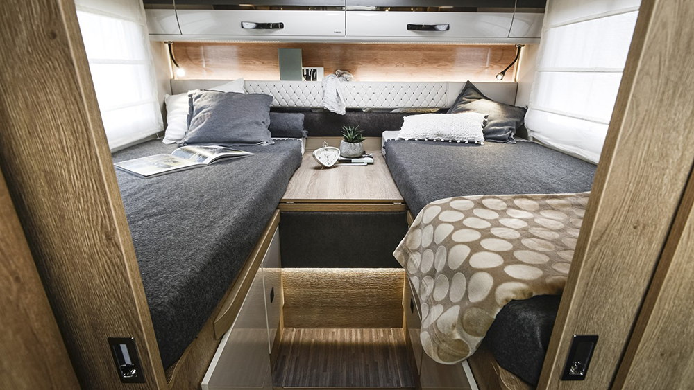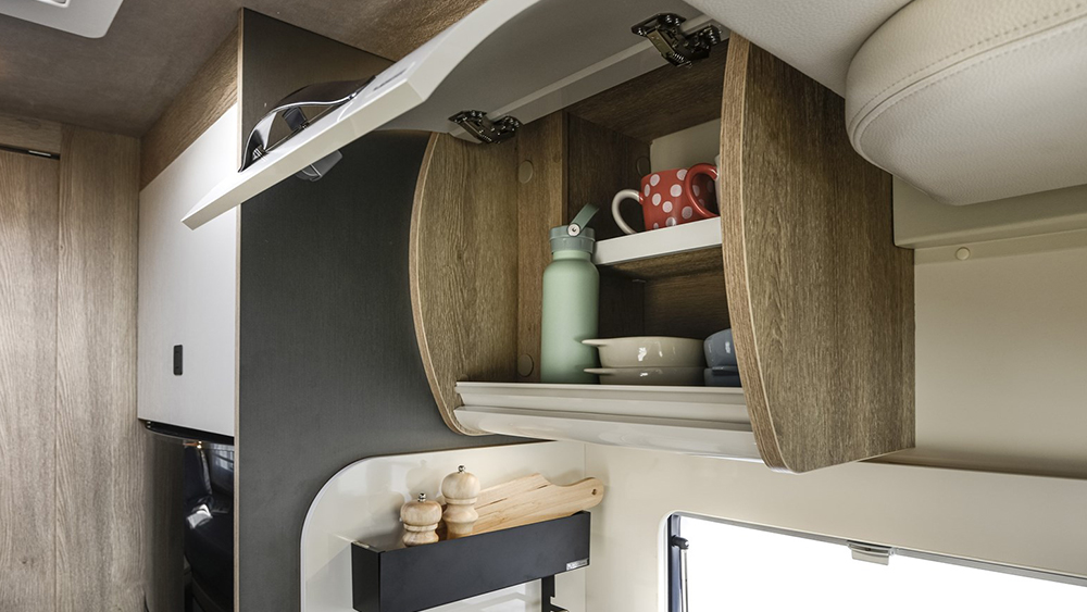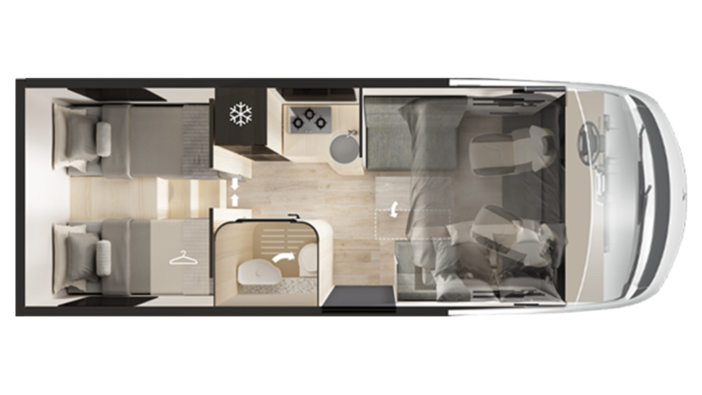 L'eleganza degli interni del Kea I64 è immediatamente percepibile grazie al grande soggiorno face-to-face, che crea un ambiente accogliente e trasformabile durante il viaggio. Le ampie vetrature e le grandi finestre conferiscono luminosità e una sensazione di spaziosità, rendendo l'area giorno ideale per vivere in armonia. Con un'altezza interna superiore ai due metri, ogni spazio è pensato per essere pratico ed ergonomico.