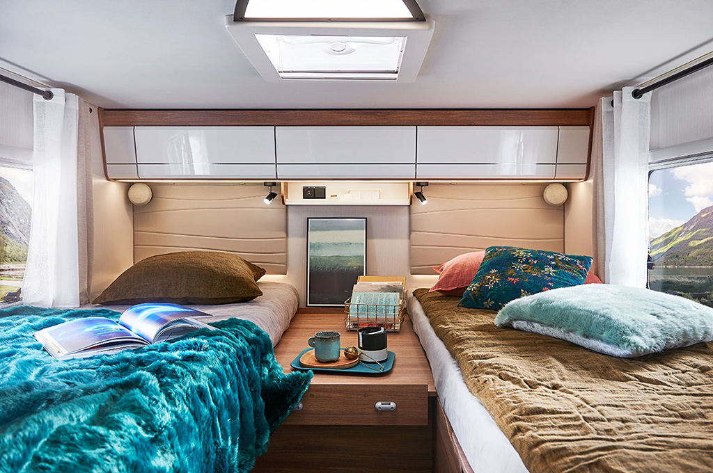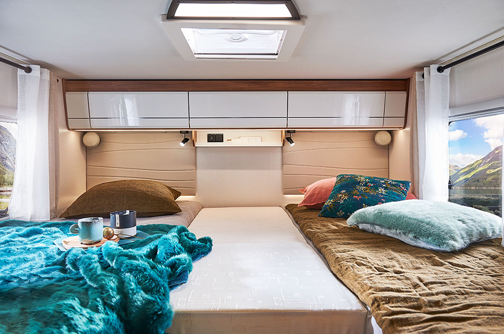 Con 12 modelli disponibili, i camper integrali sono configurabili alla perfezione. La gamma Galaxy ha quasi 100 opzioni per creare il camper ideale full-size e adattato ai tuoi desideri. Sarai in grado di scegliere diversi insediamenti del letto del garage per i letti gemelli mentre passi dal letto centrale regolabile in altezza.
