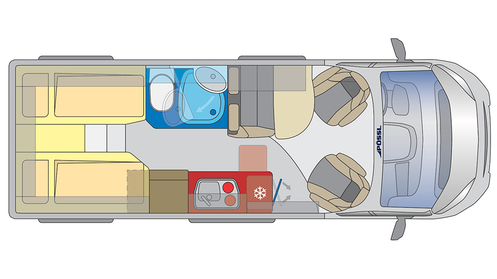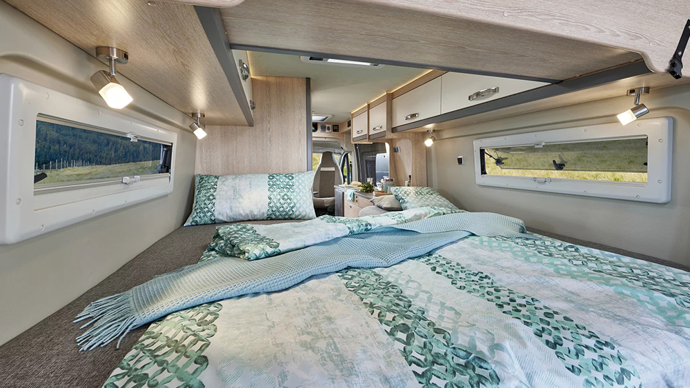 Il Summit 640 offre posti letto per due persone, con un'opzione per un terzo letto. I letti posteriori misurano circa 2.000/1.900 x 800 mm o, alternativamente, 2.000/1.900 x 1.900 mm, assicurando comfort e flessibilità. La presenza di attacchi Isofix per seggiolini rende questo camper adatto anche per le famiglie. In sintesi, il PÖSSL Summit 640 combina spazio, comfort e funzionalità, rappresentando una scelta eccellente per gli amanti dei viaggi su strada.