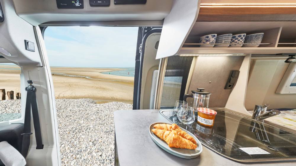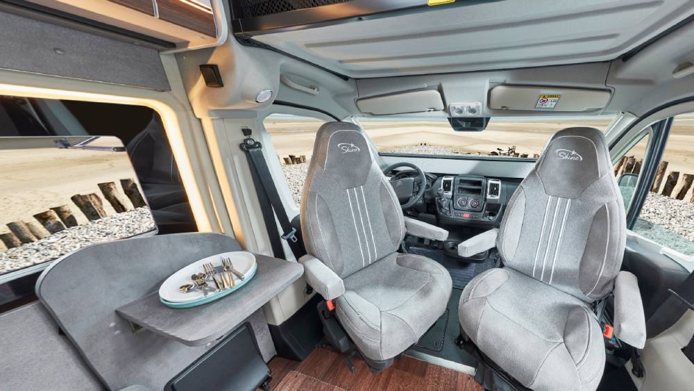 Nella zona giorno, le finestre in plastica isolante con cassonetto oscurante e zanzariera assicurano un'illuminazione naturale e una buona ventilazione all'interno dell'abitacolo. Gli oblò Midi Heki con oscurante e zanzariera aggiungono ulteriore luminosità e ventilazione.