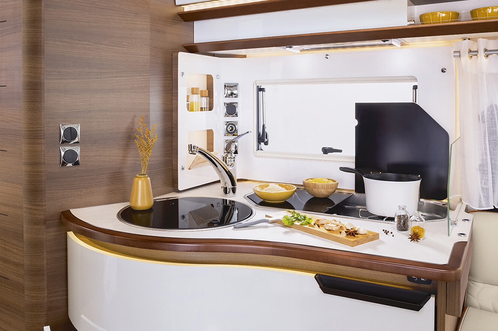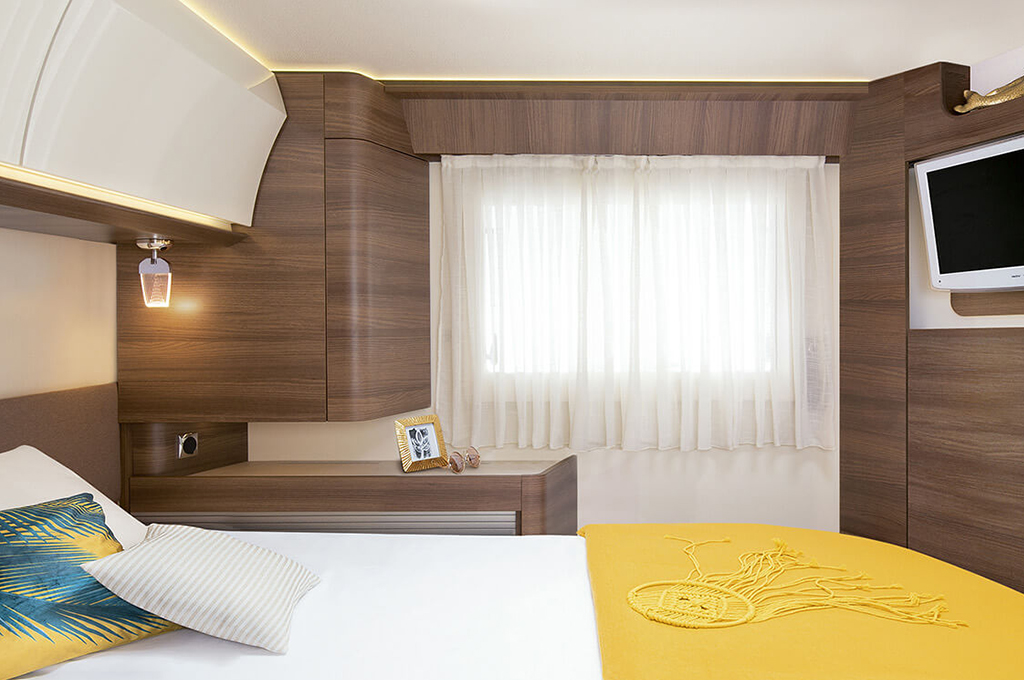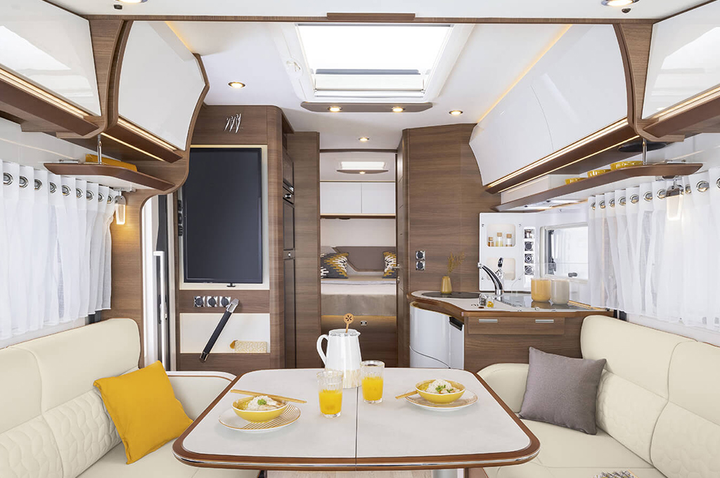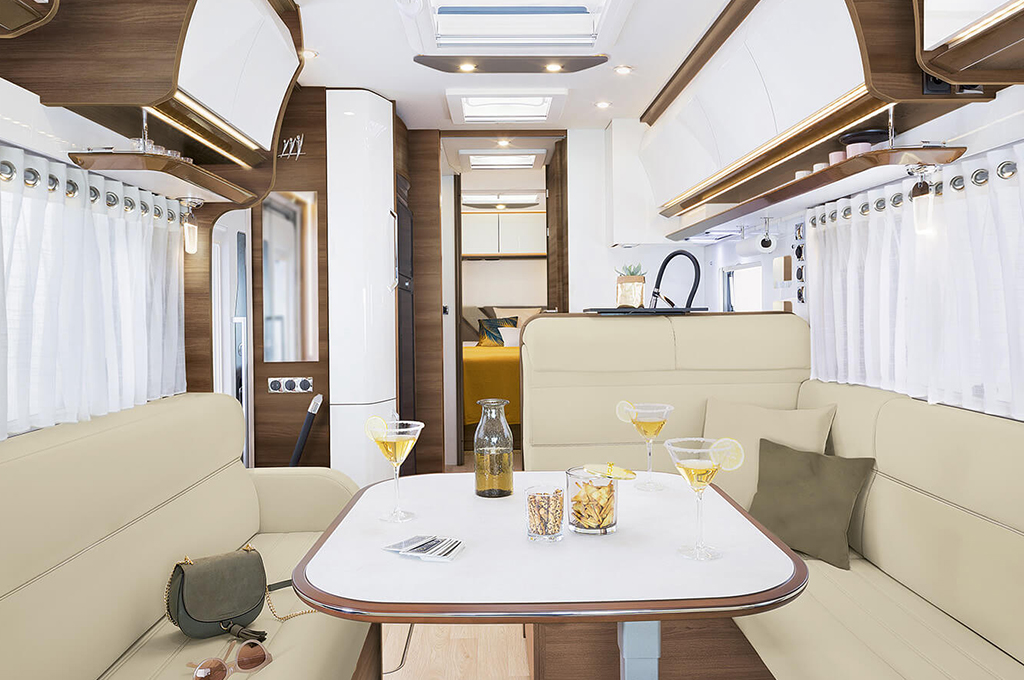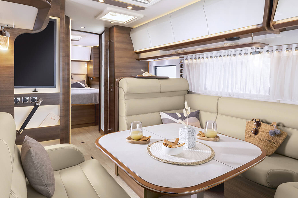 Dotata di un telaio AL-KO, la Serie RAPIDO DISTINCTION si distingue per il suo doppio pavimento di stivaggio passante. All'interno ritroverete l'atmosfera lussuosa dei modelli premium, con un arredamento dalle essenze nobili e dalle linee contemporanee.