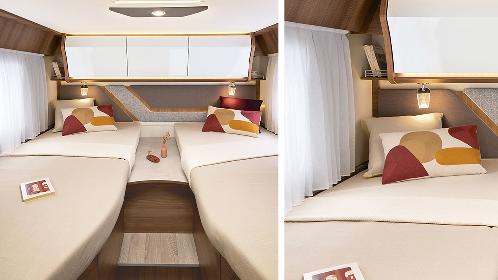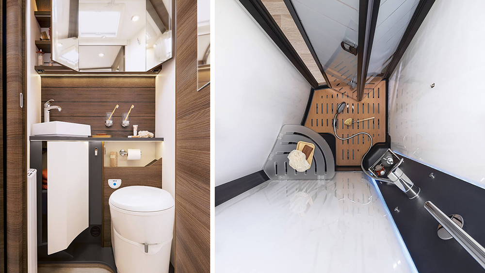 Il sistema di riscaldamento ALDE Comfort Plus Arctic, di serie, offre una diffusione del calore ottimale, anche tramite la gamba del tavolo del salotto, assicurando un ambiente sempre piacevolmente caldo. La cucina, con il suo design arrotondato e il frigorifero di grande profondità da 171 litri con anta a doppia cerniera, offre ampi spazi e praticità per preparare pasti deliziosi.