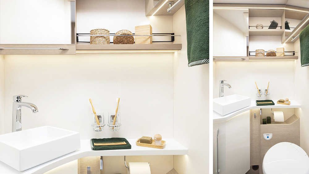 La zona notte non è da meno, con un letto centrale regolabile elettricamente in altezza di 30 cm, garantendo comfort personalizzato per una notte di sonno perfetta. Il letto centrale XXL offre ampio spazio per distendersi e rilassarsi, mentre il riscaldamento ALDE Comfort Plus Arctic (opzionale) assicura il massimo comfort anche nelle notti più fredde.