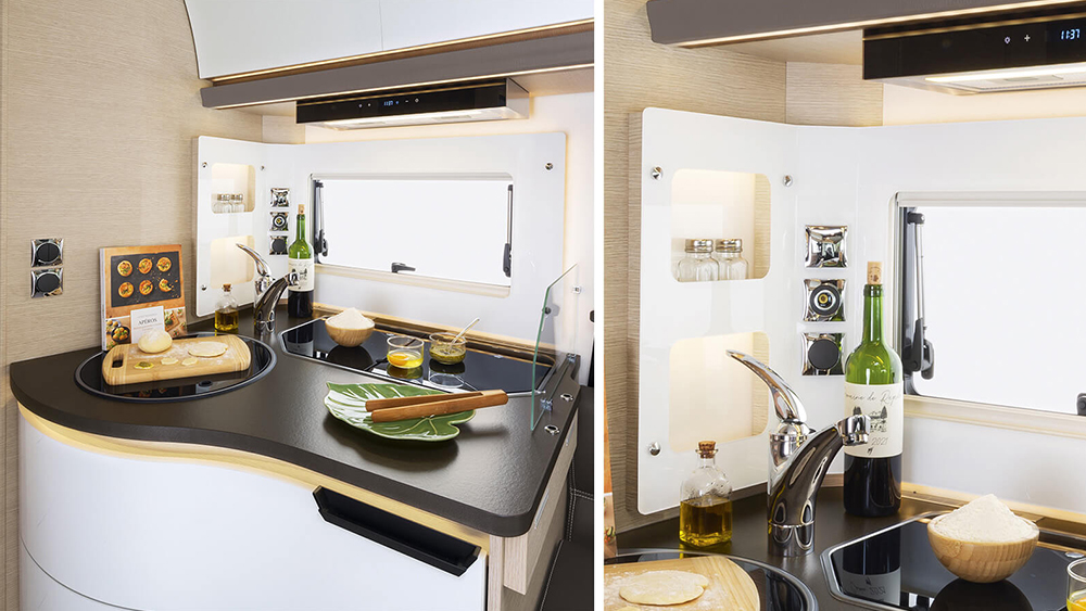 La cucina dal design arrotondato è una delizia per gli occhi e offre tutte le comodità del caso, compreso un frigorifero grande profondità da 171 litri e una piastra di cottura inox goffrato con accensione piezoelettrica. Il bagno è un'esperienza di lusso con finiture eleganti e accessori di alta qualità, mentre la camera da letto offre un'oasi di tranquillità con un letto fisso XXL e una postazione TV dedicata.