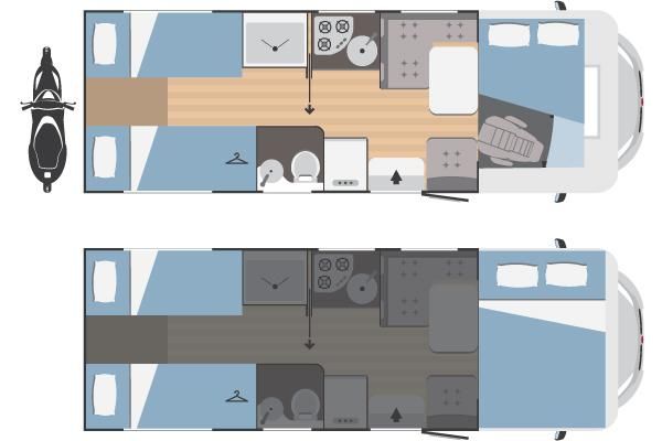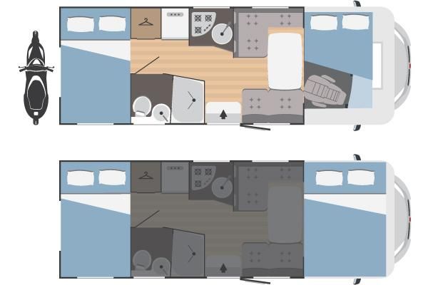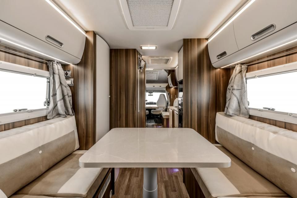 Le caratteristiche di Super Brig sono un invito all'eccellenza: dotazioni top di gamma, materiali pregiati e spazi living generosi che incanteranno ogni viaggiatore. Che tu preferisca un letto matrimoniale, trasversale, suite o gemelli trasformabili in king size, ogni opzione è progettata per il massimo comfort e relax. Inoltre, i modelli profilati offrono un comodo letto basculante anteriore di serie, completato da poggiatesta automobilistici regolabili e una colonna frigo da 153 litri.