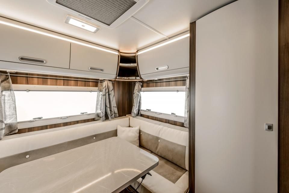 La cucina di Super Brig non è da meno, con un design intelligente che include un forno combinato con grill, piano cottura a 3 fuochi, e un miscelatore estraibile per il lavandino. La luce naturale inonda la mansarda grazie a un panoramico oblò XL apribile, mentre pratici oscuranti con zanzariera integrata mantengono il comfort in ogni stagione. Per chi viaggia con bambini, gli attacchi Isofix sono disponibili come optional, garantendo sicurezza e tranquillità.